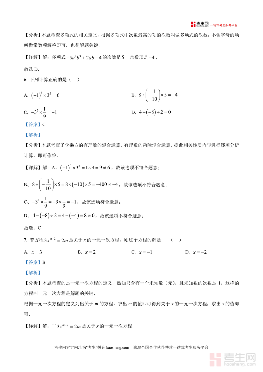 该资料核心用途在于提升学生期中备考效率与应试能力,适用场景包括课后自主复习时的题型训练、错题订正时对照解析梳理思维误区,以及教师备课参考校考命题特点。通过学习本资料,学生可掌握如同类项判断、幻方问题求解等实用解题技巧,减少备考盲区,快速提升解题准确率;教师则可借助解析优化教学策略,针对性辅导学生薄弱环节。