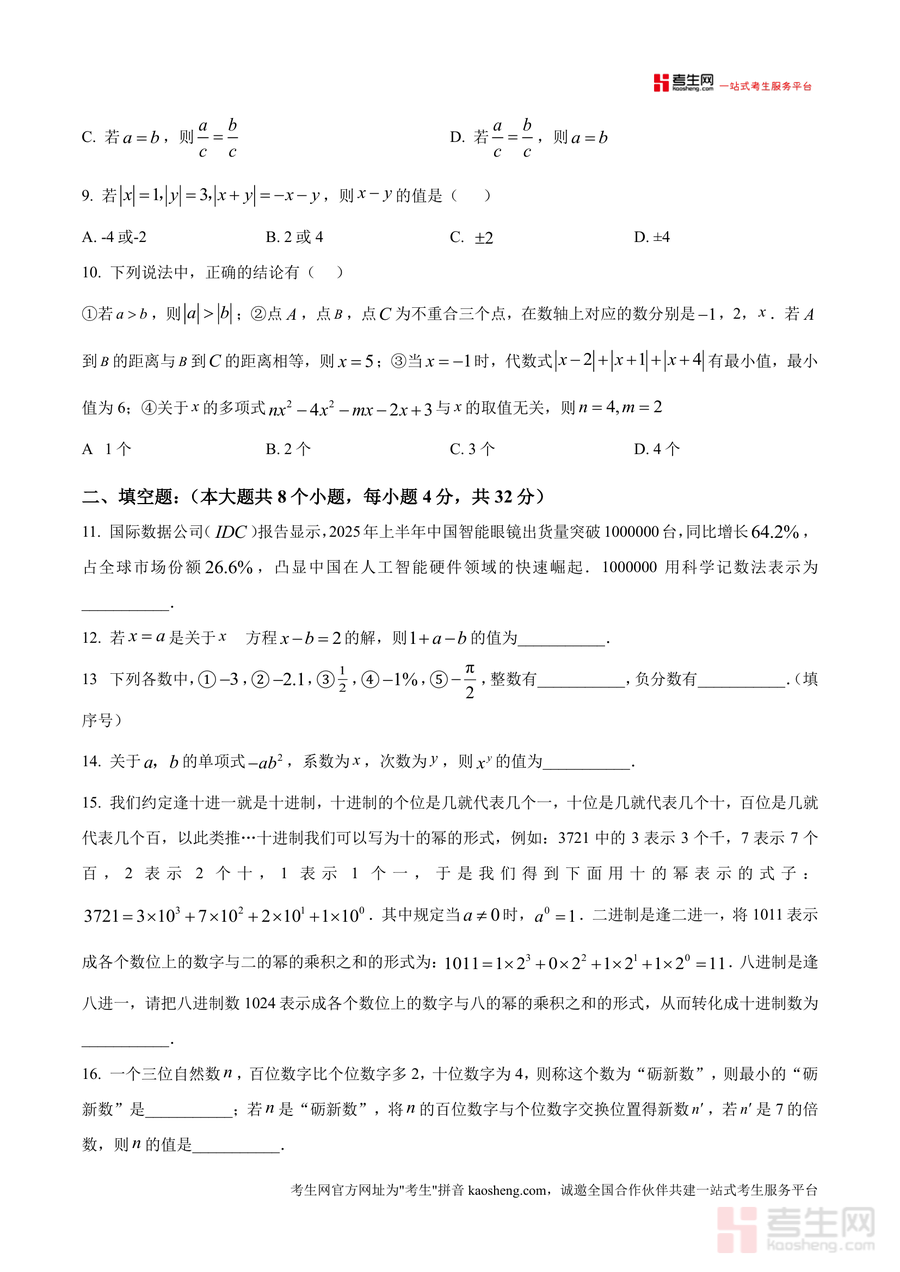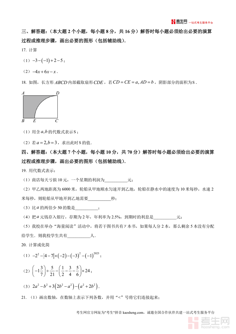 《精品解析:重庆市第十八中学2025一2026学年上学期七年级期中学习能力摸底数学试题(原卷版).docx》是一份针对七年级学生期中阶段学习能力评估的权威备考资料,核心内容涵盖有理数运算、代数式化简、方程应用、数轴与几何图形等七年级上册数学核心知识点。试题结构严格遵循期中检测标准:包含选择题(10小题40分)、填空题(8小题32分)、解答题(9小题86分),题型设置贴合重庆十八中教学进度与命题风格。特色亮点在于试题紧密结合实际应用场景(如运输问题、种植基地护栏设计等),既考查基础概念掌握情况又注重逻辑思维与解题能力的提升,能有效帮助学生熟悉期中测试的题型分布与难度梯度。