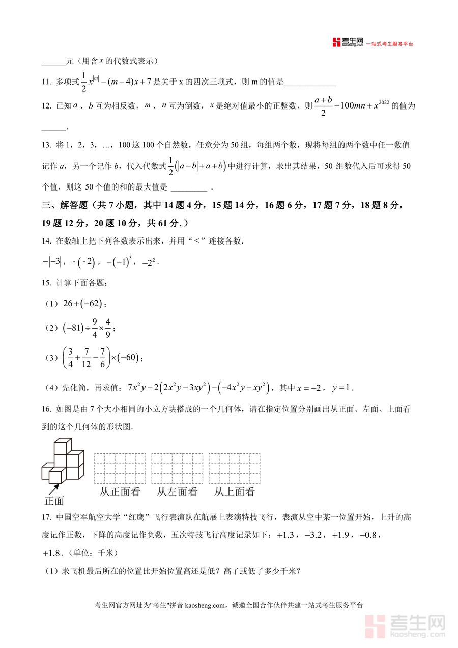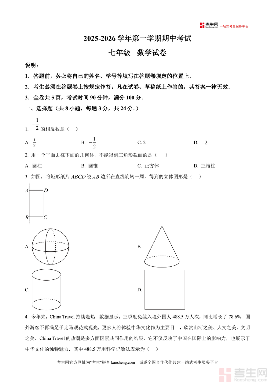 《精品解析:广东省深圳市福田区石厦学校2025-2026学年上学期七年级期中考试数学试卷(原卷版).docx》是一份针对深圳本地七年级上学期期中数学考试设计的权威备考资料,涵盖选择题(8小题)、填空题(5小题)及解答题(7小题)三大题型,贴合石厦学校教学进度与深圳期中命题风格。试卷内容聚焦有理数运算、代数式化简求值、立体图形截面与视图、综合实践应用等核心知识模块,包含基础巩固题(如相反数、科学记数法)、中档能力题(如代数式求值)及拓展创新题(如折线数轴微项目、长方体纸盒制作实践),能全面检测学生知识掌握程度与思维能力。