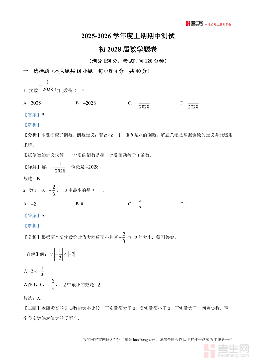 《精品解析:重庆市重点中学江津二中联盟十校2025-2026学年上期期中联考七年级数学试题(解析版)》是一份聚焦重庆江津地区初中数学期中备考需求,整合联盟十校联考资源打造的高品质真题解析资料。该资料包含完整试题卷与逐题深度解析两大部分,试题覆盖有理数运算、科学记数法、数轴应用、代数式求值等七年级核心知识点,题型涵盖选择、填空、解答三大类,全面贴合联考命题方向。解析部分通过"考点分析-详细解答-易错点睛"三步法拆解题目逻辑,如对科学记数法明确a与n值确定规则,对规律探究题总结通项公式推导思路,帮助使用者精准把握知识本质与解题技巧,属于实用性极强真题解析资料。