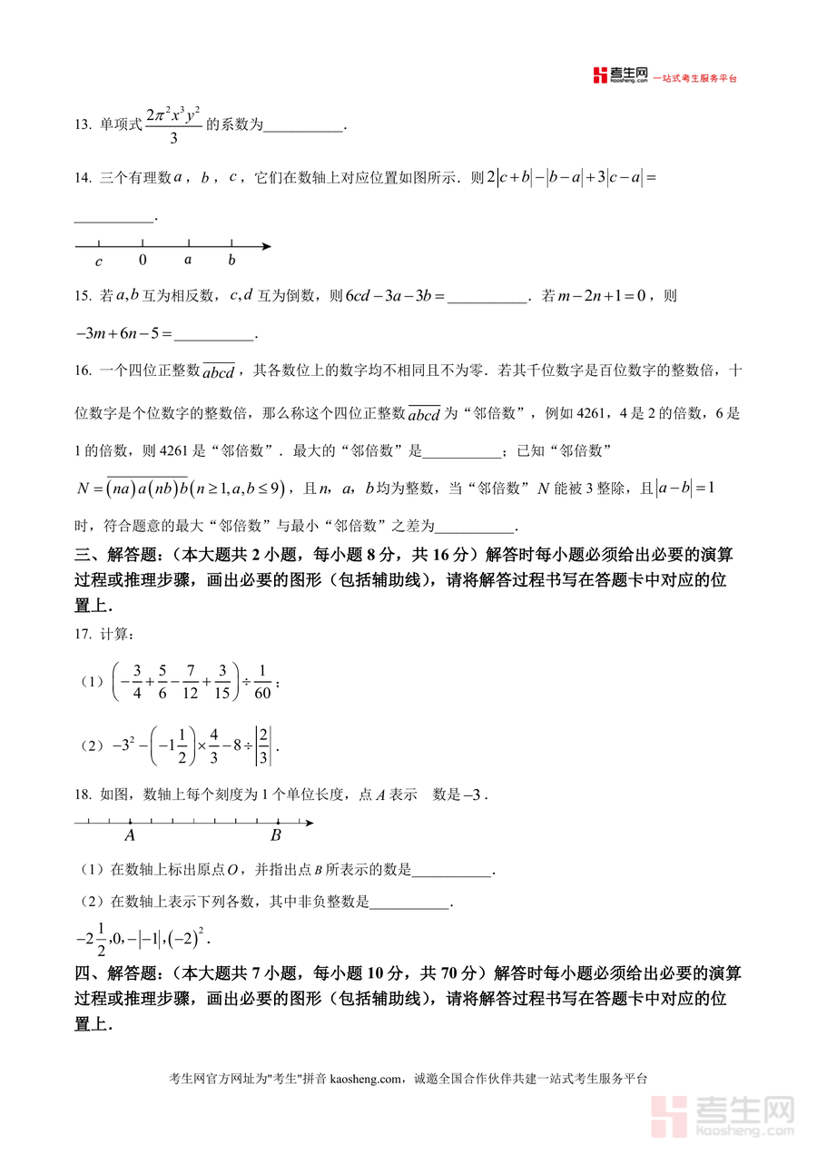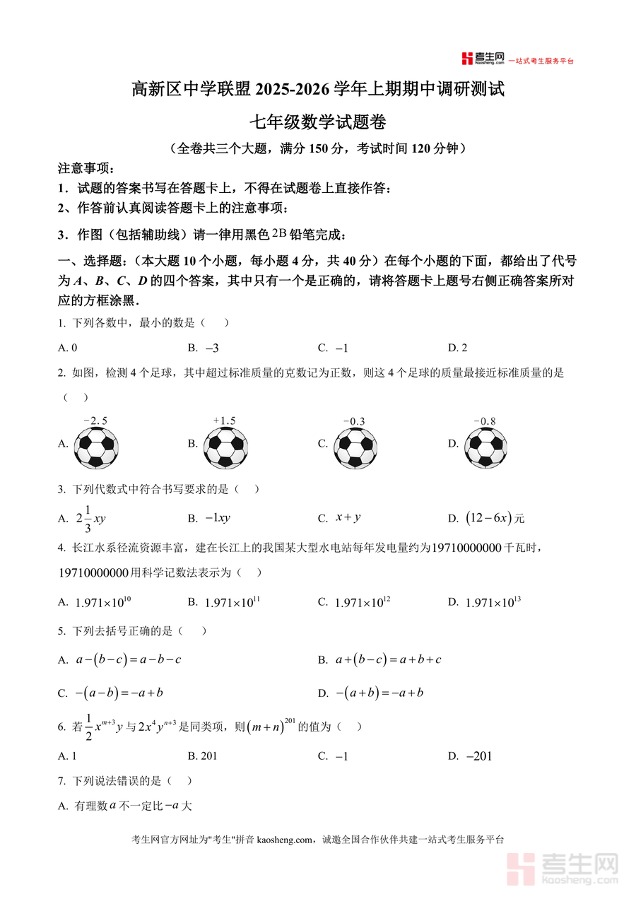 《精品解析:重庆市高新区2025-2026学年七年级上学期期中考试数学试卷(原卷版).docx》是一份面向重庆市高新区七年级学生及教育工作者的区域性期中真题备考资料,由高新区中学联盟联合命制,严格契合七年级上册数学教学大纲与区域教学实际。试卷结构规范完整,包含选择题(10小题共40分)、填空题(6小题共24分)及解答题(9小题共86分)三大板块,覆盖有理数运算、代数式书写与化简、数轴应用、整式加减等核心知识点,同时融入数形结合、逻辑推理等数学思想,充分体现区域命题特色与能力考查导向。