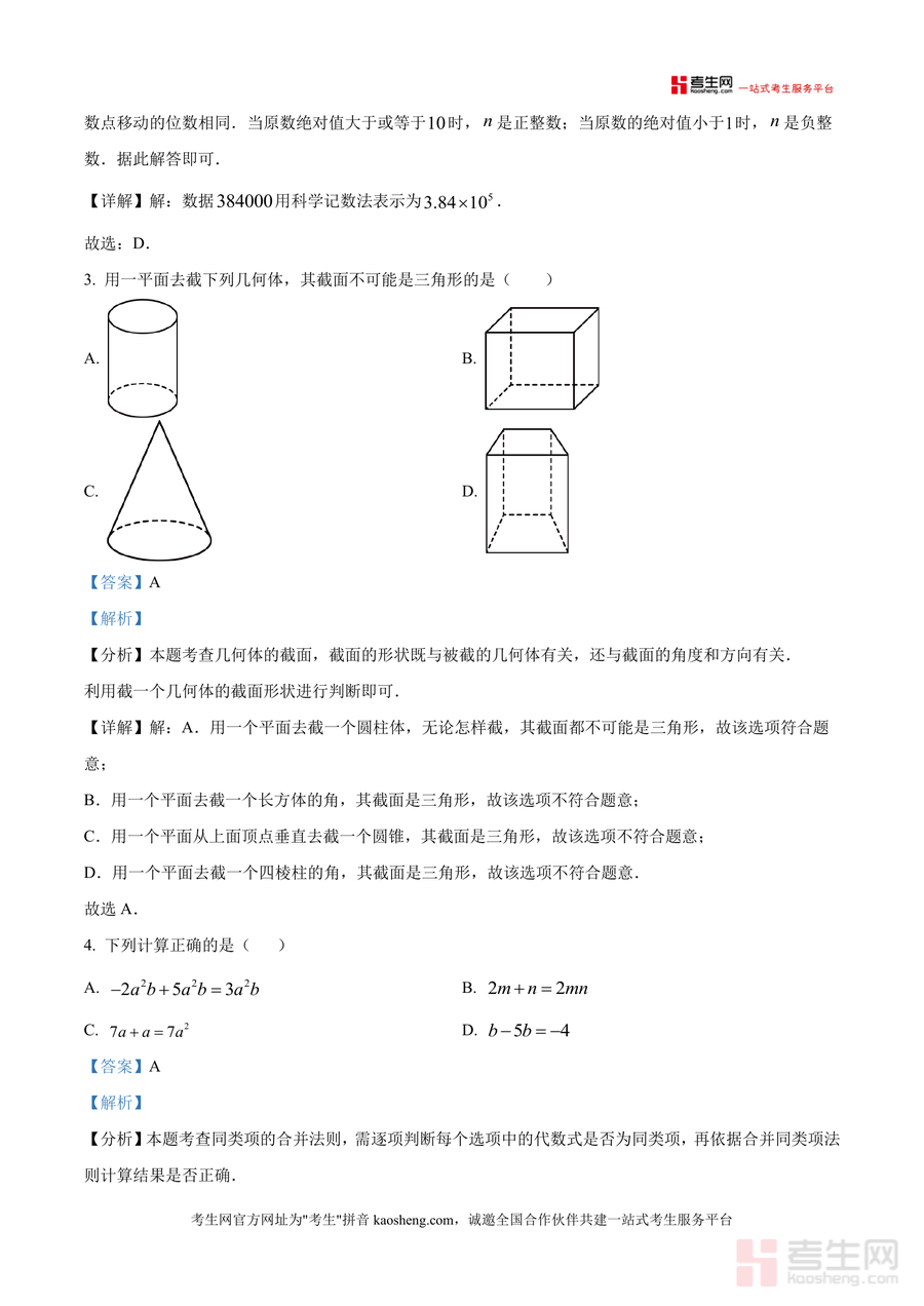 《精品解析:广东省深圳市龙华区实验学校2025-2026学年上学期七年级期中考试试卷(解析版).docx》是一份针对七年级数学期中备考的权威真题解析资料。主要内容涵盖试卷结构说明(4页满分100分、90分钟考试时长)、各类题型(选择题8道、填空题5道、解答题7道)及对应详细解析,每道题均包含考点分析、解题思路及规范步骤,如正负数实际应用、科学记数法表示、几何体截面判断等核心知识点。特色亮点在于依托龙华区实验学校期中真题,解析精准贴合教学大纲,帮助学生快速定位知识盲区并掌握解题方法。