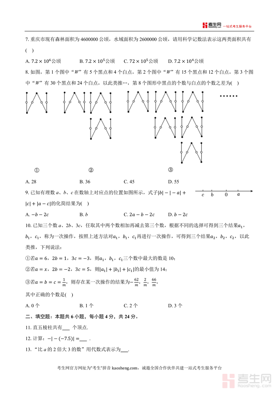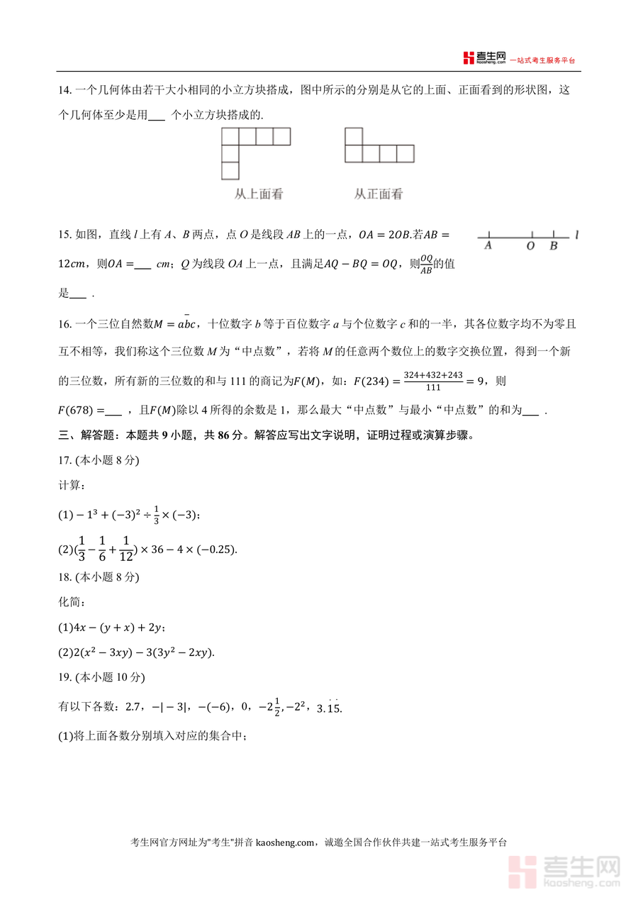 该试卷核心用途在于帮助七年级学生进行期中前自我检测与知识点查漏补缺,同时可为数学教师提供教学参考与命题方向借鉴。使用场景包括学生日常课后练习、期中前模拟测试,以及教师课堂例题选取或作业布置;对学生而言,通过练习可熟悉期中题型分布与难度梯度,提升应试能力;其备考优势在于作为集团内部真题,精准反映本地教学重点与命题趋势,能有效帮助学生把握考点方向,减少复习盲目性。
