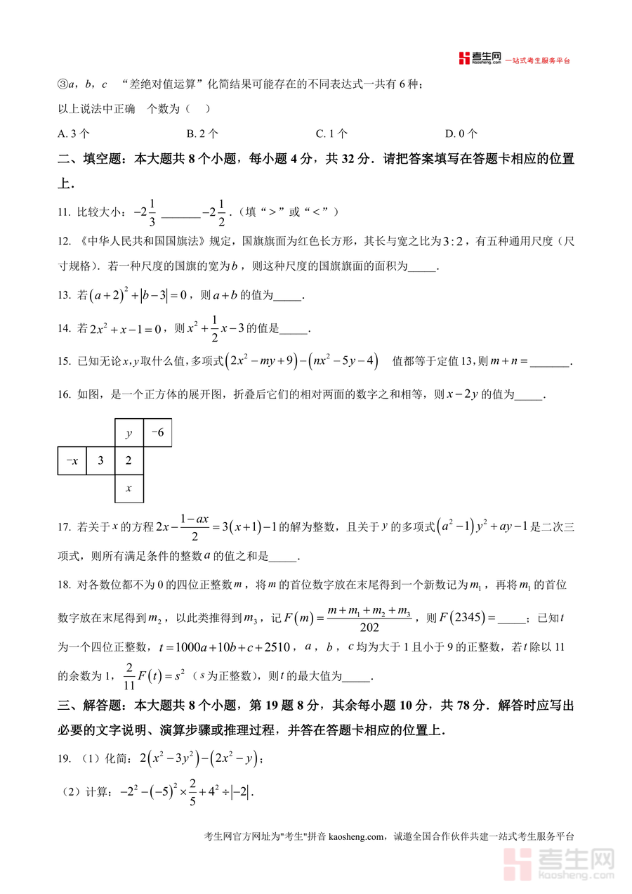 该资料核心用途为助力七年级学生期末备考自测、教师分析区域命题趋势及家长了解孩子学习水平。使用场景包括学生考前模拟训练(熟悉题型分布与时间分配)、教师课堂教学案例设计(结合真题讲解知识点)、家长辅助孩子针对性复习(根据试题考点查漏补缺)。用户价值体现在通过原卷训练可提升学生应试能力,精准定位薄弱环节;备考优势则是其区域专属属性,能让使用者提前适应本地考试难度与命题风格,避免盲目复习,例如解答题中的进位制探究题可有效拓展数学思维,帮助学生适应创新题型。
