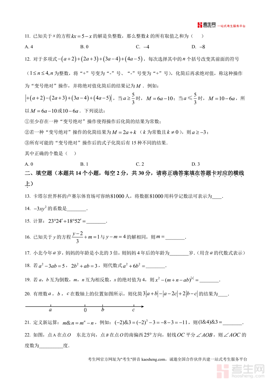 《精品解析:重庆市南开中学2024-2025学年七年级上学期期末模拟数学试题(原卷版).docx》是一份针对重庆南开中学初2027级七年级上学期数学期末备考设计的权威模拟试题原卷资料。该资料严格遵循初中数学课程标准七年级上册要求编制,包含选择题(12小题)、填空题(14小题)、计算题(4小题)及解答题(5小题)四大题型,覆盖相反数与绝对值、几何体视图、统计基本概念、直线与角性质、代数式化简求值、一元一次方程应用等核心知识点。其特色在于贴合南开中学命题风格,题型梯度合理,既注重基础巩固又强调能力拓展,能精准还原真实考试场景。