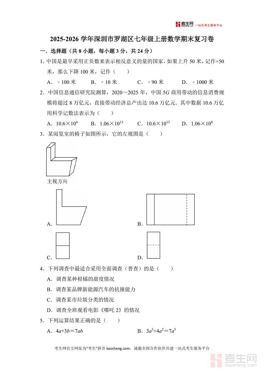 本资料适用于深圳市罗湖区2025-2026学年七年级学生、数学教师及家庭辅导者。作为期末备考的必备资料,其不可替代性在于结合本地学情与命题特色,构建完整训练与解析体系;长期价值在于帮助学生夯实七年级上册数学基础,为后续学习筑牢根基,是提升数学成绩与学科素养不可或缺的工具。