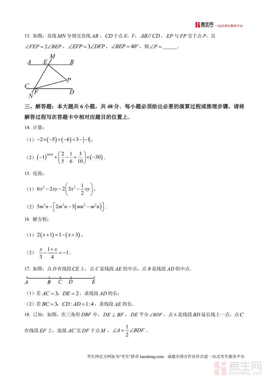 该资料核心用途为辅助七年级学生进行期末系统复习与模拟实战,使用场景包括课堂同步练习、课后自主刷题训练、考前冲刺模拟考试等。对学生而言,通过练习这份真题可熟悉期末考题型结构与难度梯度,精准把握考点分布;对教师而言,可作为课堂教学案例或单元测试命题参考;对家长而言,能辅助孩子进行针对性查漏补缺。其备考优势在于,作为名校真题,它能帮助学生提前适应考试节奏,提升应试能力,同时通过真题训练掌握命题思路,减少复习盲目性,提高备考效率。