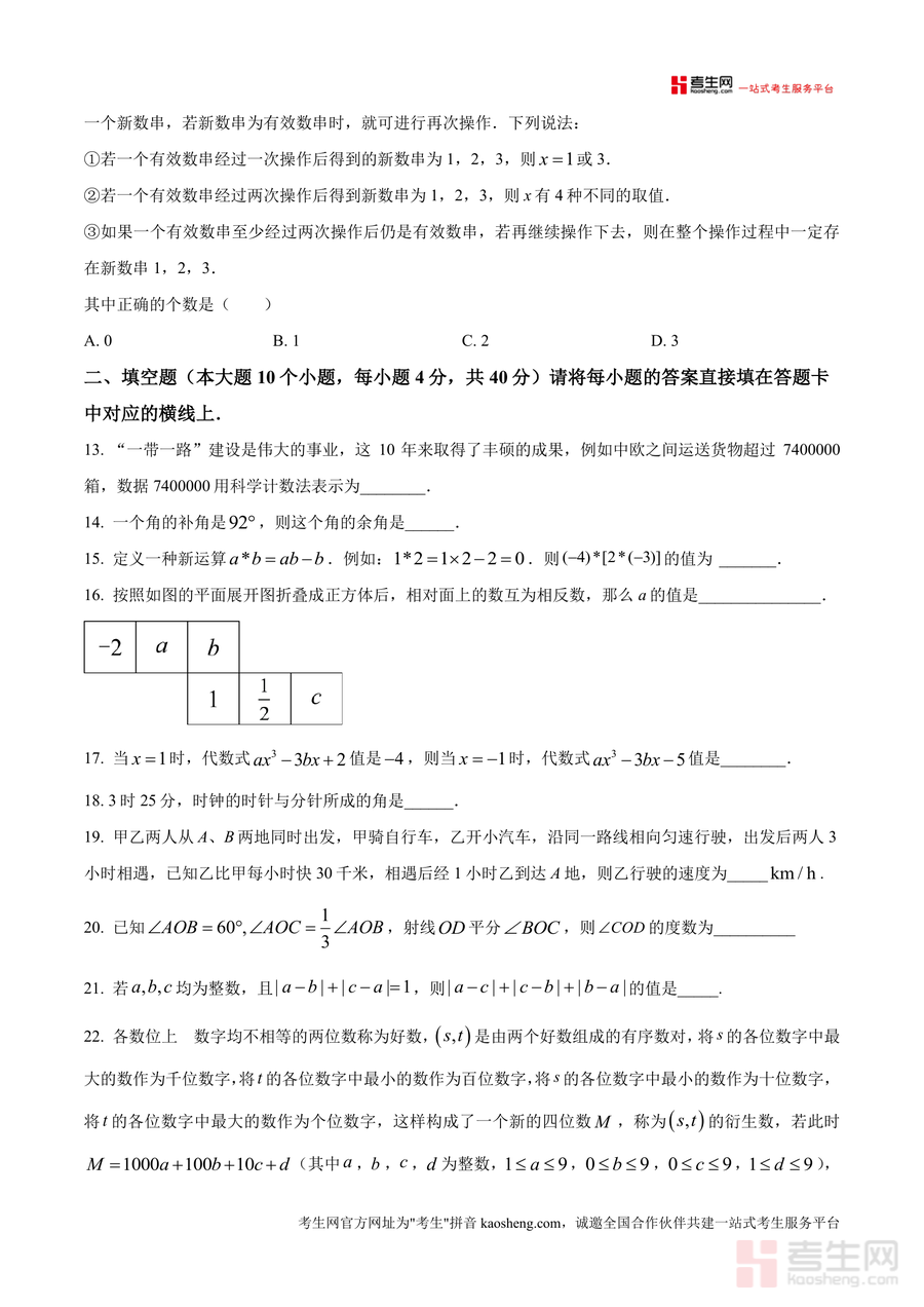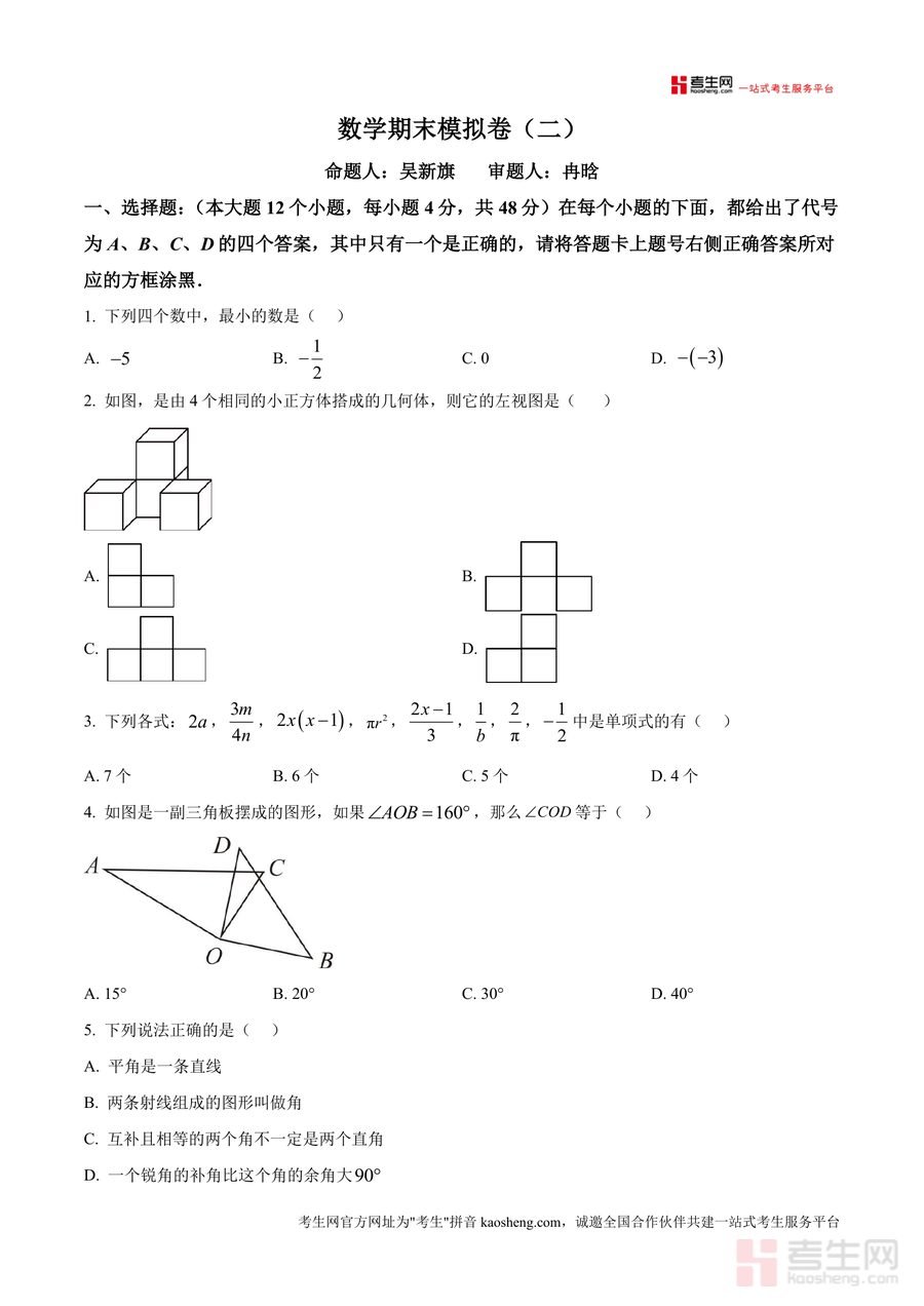 《精品解析:重庆市鲁能巴蜀中学2024-2025学年七年级上学期期末模拟数学试题(原卷版).docx》是一份针对七年级上学期数学期末备考设计的高质量模拟试题资料。该资料严格遵循重庆本地教学大纲及考试要求编制,包含12道选择题(48分)、10道填空题(40分)和6道解答题(62分),全面覆盖有理数运算、整式化简求值、几何图形视图与角度计算、一元一次方程应用等核心知识点。其特色亮点在于依托鲁能巴蜀中学优质教学资源,命题兼具基础性与创新性:基础题夯实核心概念(如选择题1-5题考查有理数大小比较、几何视图等),中档题强化知识应用(如填空题19题行程问题、解答题25题化简求值),创新题则注重思维拓展(如选择题12题新定义操作、第10题图形规律探索),能有效检测学生对知识的综合掌握程度。