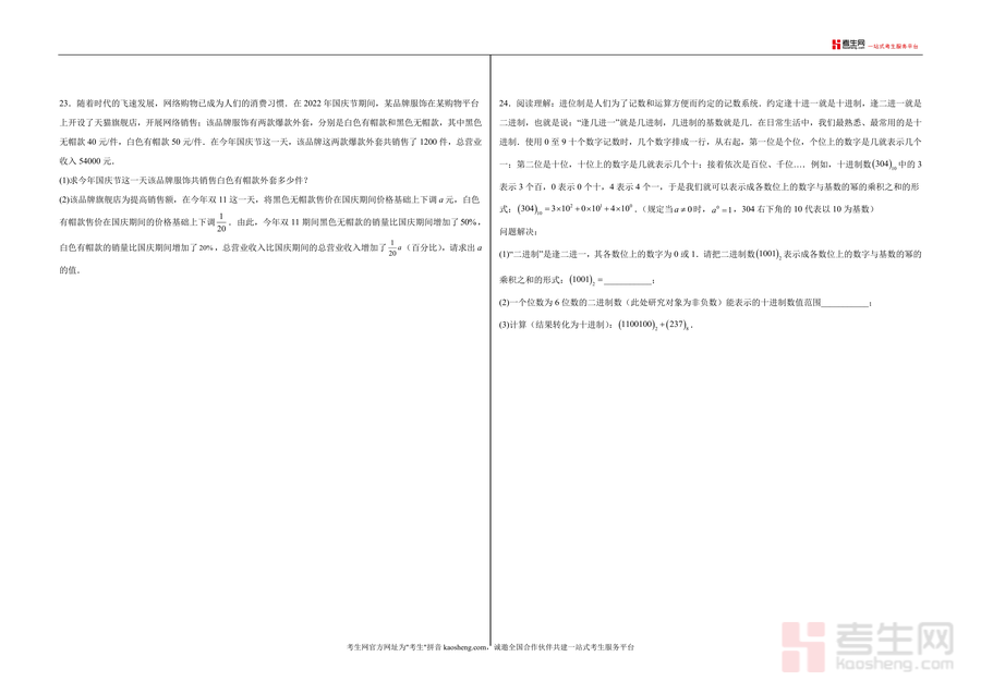 该试卷适用于重庆地区使用人教版教材的七年级学生、初中数学教师及课外辅导机构。作为专业备考资料,它不仅能帮助学生系统梳理上册知识体系、强化薄弱环节,更能通过本地化命题风格与创新题型设计,提升学生应对本地考试的能力。其不可替代性体现在对重庆本地命题趋势的精准把握,长期来看也能培养学生数学思维与解决实际问题能力,是重庆七年级学生期末备考不可或缺的优质资料。