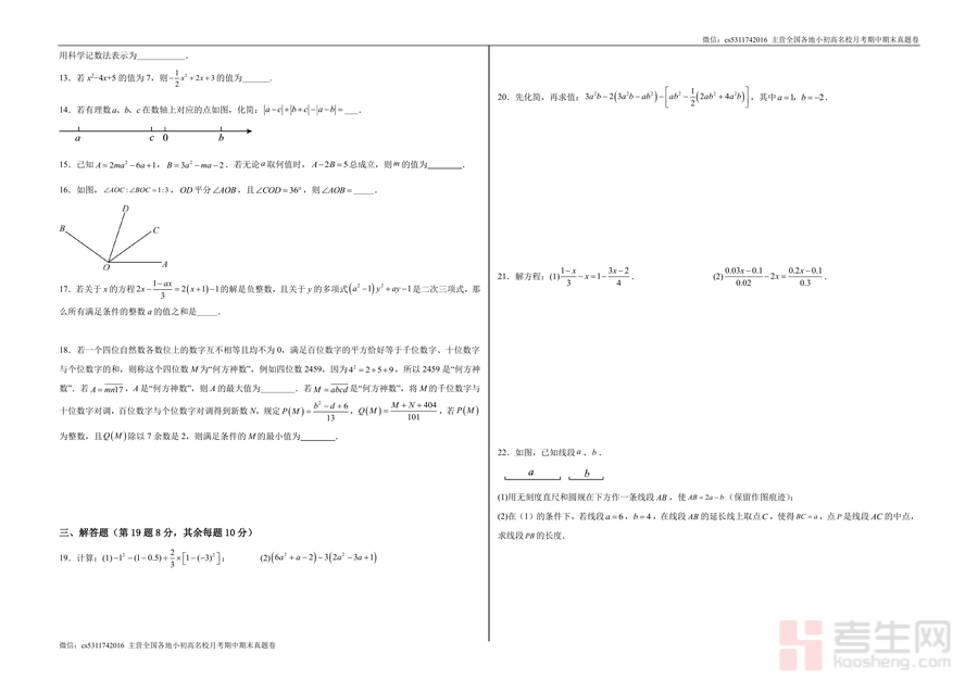 该试卷核心用途为期末前系统复习自测、教师课堂练习布置及家庭作业巩固;使用场景包括学生自主刷题查缺补漏、教师针对性讲解重点题型、家长辅助孩子进行限时训练。用户价值方面,通过真题风格的模拟训练可有效提升应试能力;解答题部分注重规范解题思路培养,助力学生掌握得分技巧;创新题型能拓展数学思维深度,应对考试中的灵活题目。备考优势在于精准匹配重庆地区命题方向与高频考点(如科学记数法、一元一次方程应用、几何图形计数规律等),帮助学生缩小复习范围,提高复习效率,避免盲目刷题。