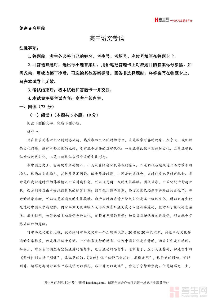 该资料核心用途为高三学生阶段性复习效果检测与应试能力提升,适用于课堂限时训练、课后自主刷题及模拟考试等场景;学生通过使用这份试卷,可熟悉南昌地区联考题型分布与分值占比(如阅读板块占72分),精准把握本地命题侧重点;原卷版规范呈现帮助学生提前适应高考答题流程与注意事项(如答题卡填写要求),减少操作失误失分风险;试卷中对中西文化异同、文学作品分析等内容考查,有效训练信息提取、逻辑论证与文学鉴赏等核心应试素养,为后续针对性复习提供明确方向,显著提升备考效率效果,让学生在联考与高考中更具竞争力实现成绩突破。