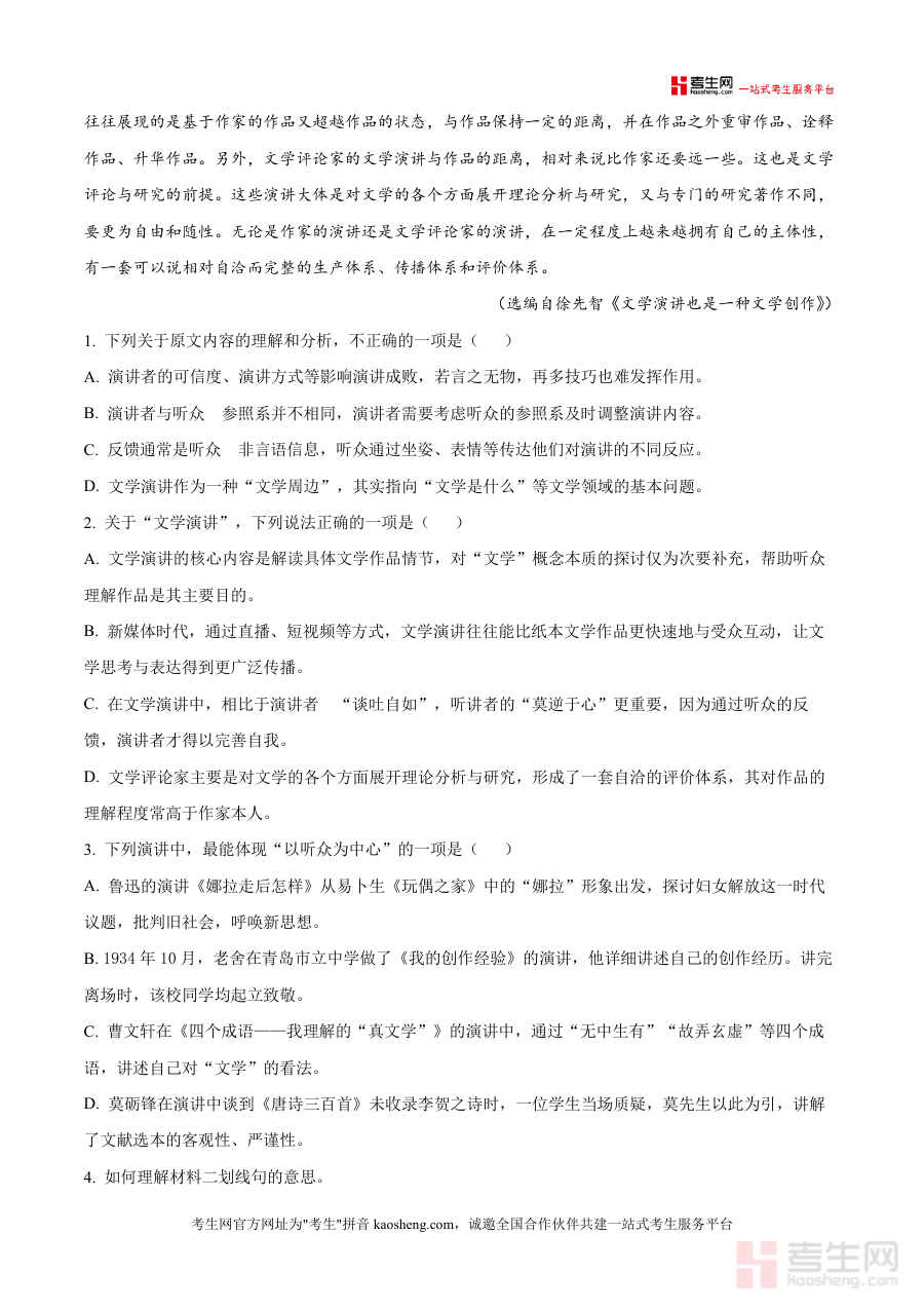《精品解析:2026届浙江省丽水、湖州、衢州三地市高三一模语文试题(原卷版)》是一份聚焦高三语文一轮复习关键节点且具备区域命题导向性的权威备考资料,核心内容涵盖完整的三地联考原卷及配套深度解析两大部分。其特色亮点在于依托浙江区域联考真题资源构建内容框架——原卷严格遵循浙江高考语文题型结构(三大题23小题满分150分),解析部分则针对阅读模块中的文学演讲、故乡书写等典型文本主题展开考点拆解,并融入答题思路梳理与评分标准说明,帮助学生建立考点与文本的关联认知,为后续复习明确方向。