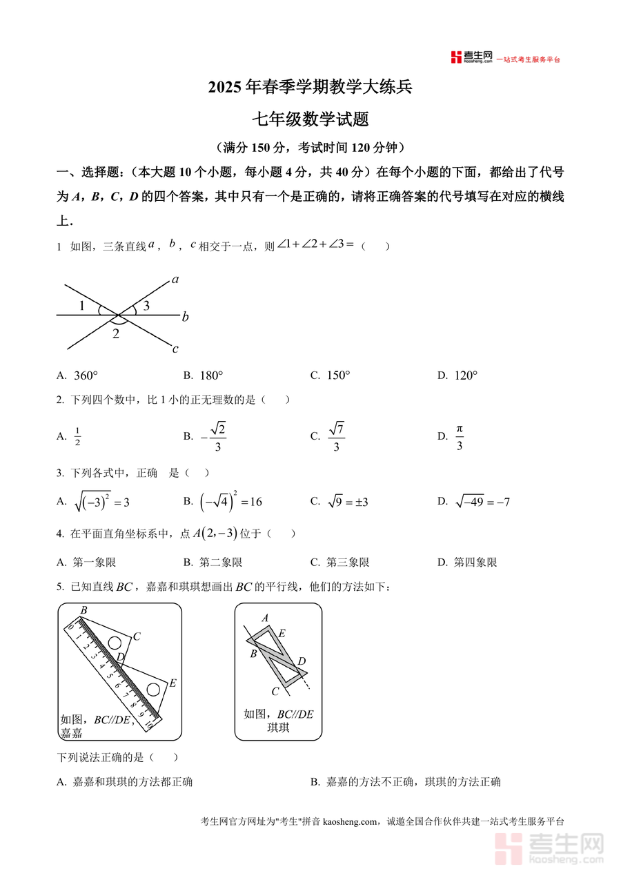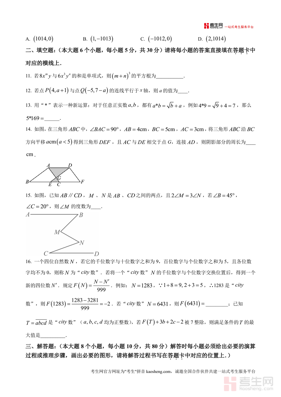 本试题适用于渝北区及周边七年级学生、初中数学教师及关注孩子学习的家长。其必要性体现在能让使用者提前把握区域联考命题方向,避免盲目复习;不可替代性在于六校联盟联合命题具有权威性与代表性,真实反映学生区域竞争力;长期价值在于帮助学生构建系统数学知识体系,培养逻辑思维能力,为后续学习奠定坚实基础。