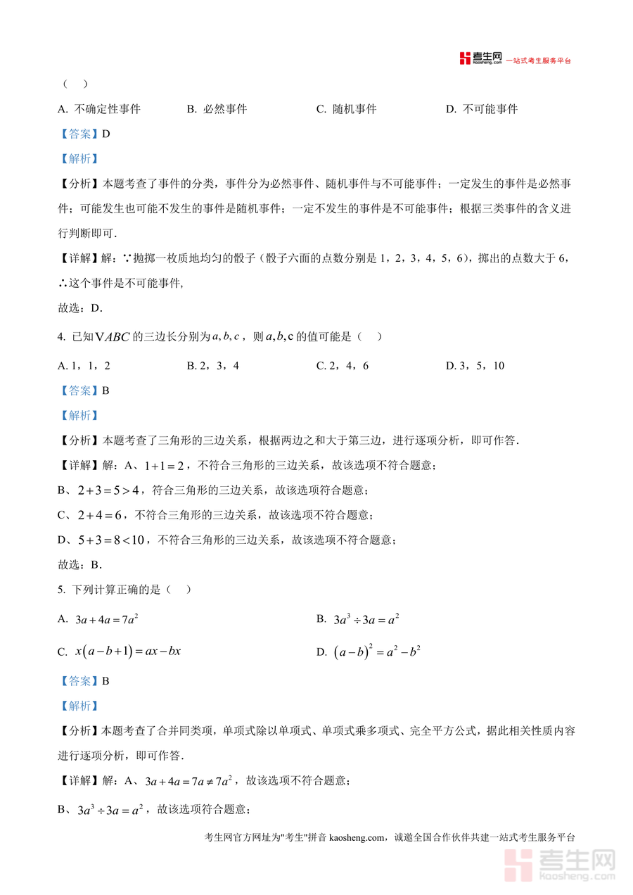 该资料核心用途在于帮助学生巩固阶段知识、提升应试能力。使用场景包括课后错题复盘(对照解析理解错误根源)、考前冲刺复习(通过真题熟悉题型与考点分布)、日常知识巩固(借助解析拓展解题方法)。对学生而言,能通过解析掌握不同题型下 的解题逻辑,明确考点权重;对教师或家长,可作为教学辅助工具或辅导参考材料,快速定位学生知识薄弱点。其备考优势在于解析详实且深度适配该校真题,避免泛泛而谈。
