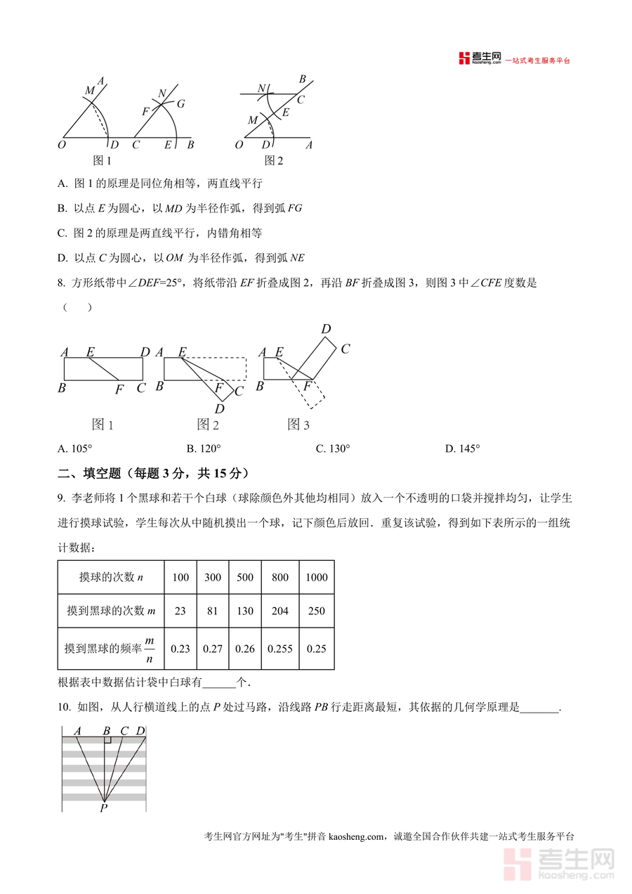 《精品解析:广东省深圳市第二实验学校2024--2025学年七年级下学期第一次月考数学(1-3章)测试卷(原卷版).docx》是一份精准适配该校七年级下学期第一次月考数学考试的核心备考资料。资料覆盖七年级下册数学前三章核心内容,包含选择题、填空题、解答题三大题型共20道题目(含拓广提升类探究题),涵盖科学记数法、平行线判定与性质、整式运算、角度计算及统计概率等典型考点。其特色亮点在于严格贴合该校月考命题方向与难度梯度,题目设计兼顾基础巩固与能力拓展,能直观反映该校阶段性教学重点与考核要求。