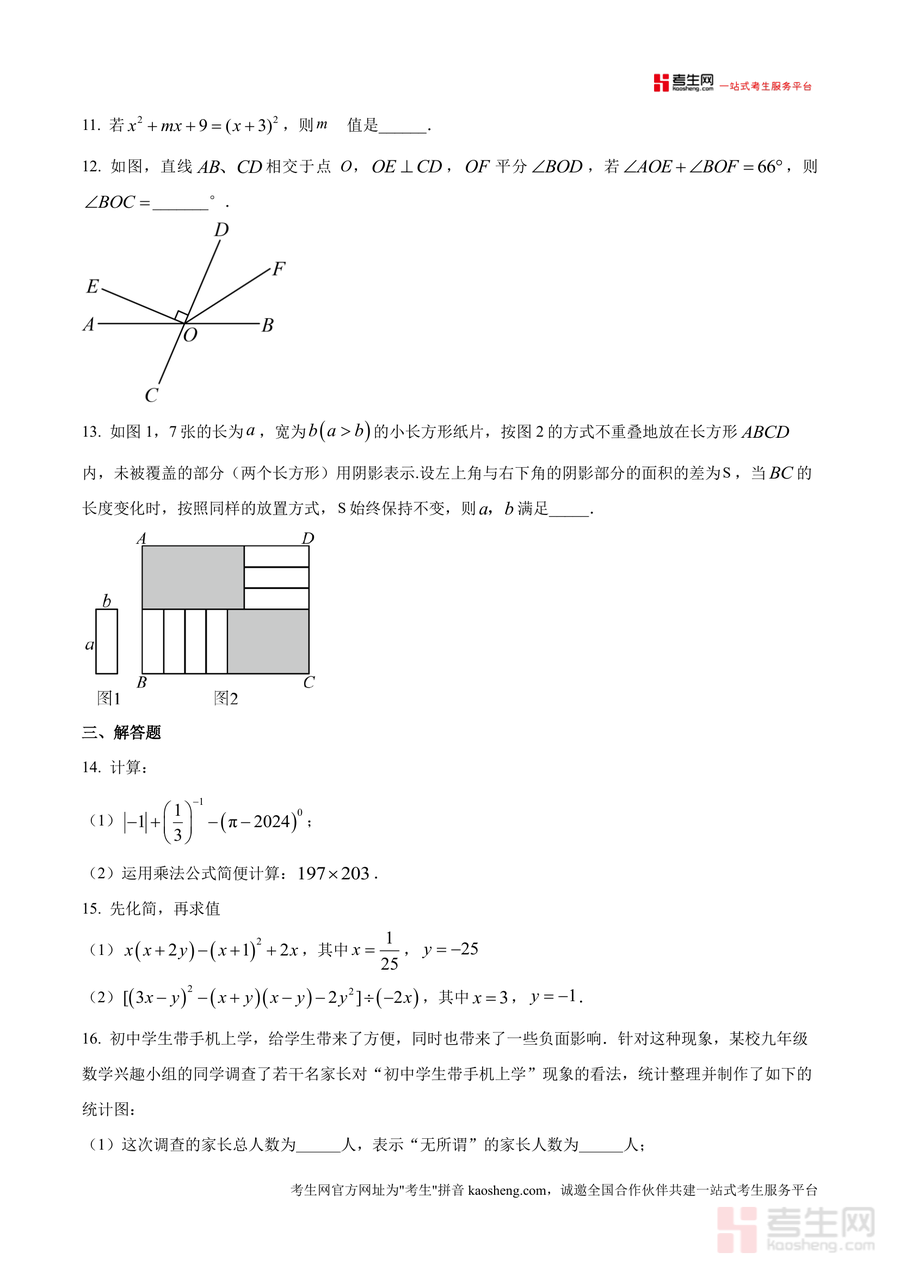 本资料适用于深圳市第二实验学校七年级在读学生,及使用相同教材版本且需备考类似阶段性考试的七年级学生。作为该校第一次月考数学科目的专属原卷资料,其不可替代性在于直接对接该校命题思路,能有效缩短备考周期并提升复习效率;长期来看,资料中的典型题目可作为知识点巩固与能力拓展的长效素材,助力学生构建扎实的数学知识体系。