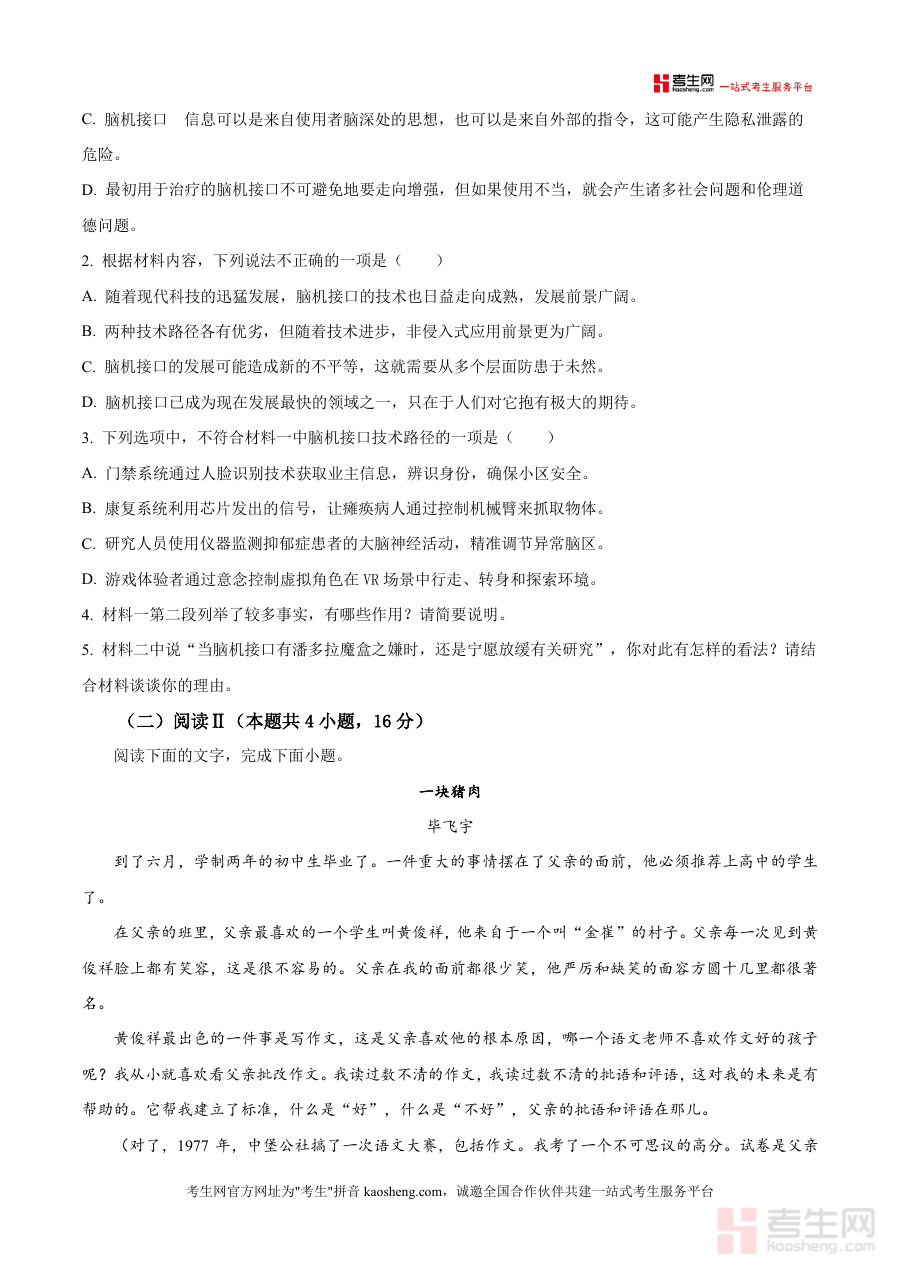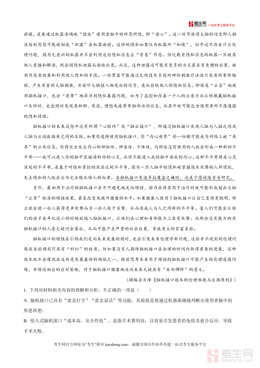 《精品解析:广东省中山市一中、宝安中学2025-2026学年高三11月联考语文试题(原卷版).docx》是一份聚焦高三语文备考关键阶段精准定位的优质真题资料,核心定位为两省重点高中联合命题的实战型备考资源,主要内容覆盖现代文阅读(含脑机接口科技论述类文本与毕飞宇散文《一块猪肉》)、古诗文阅读(隐含全题型设计)、语言文字运用及写作等高考核心模块,特色亮点在于选题融合前沿科技主题与文学经典文本,题型设置严格贴合新课标高考命题趋势与重点校教学方向,能精准反映联考难度梯度与命题逻辑,为考生提供真实考场级别的训练素材。