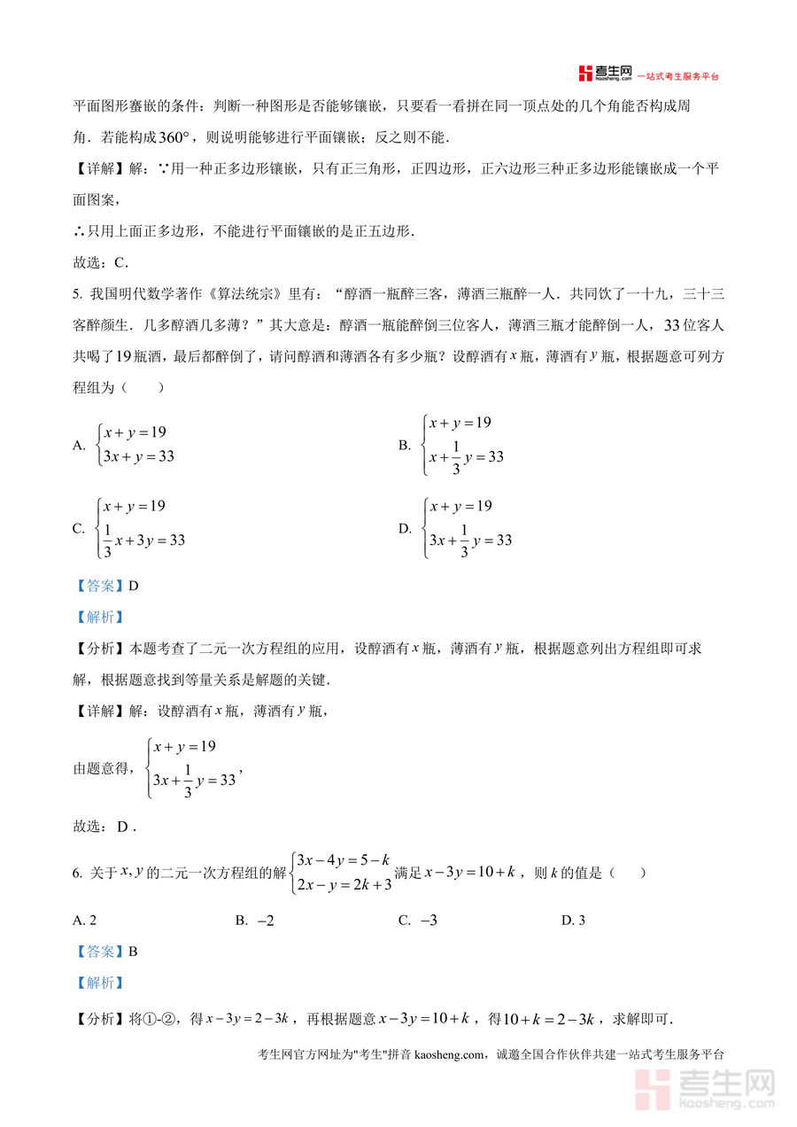 核心用途涵盖学生自主复习时对照纠错(如通过选择题解析掌握轴对称图形判断方法)、教师备课参考题型设计逻辑、家长辅助孩子梳理知识漏洞。使用场景覆盖课后巩固训练(如利用解答题步骤拆解巩固方程组解法)、考前冲刺模拟(结合本地命题风格针对性练习)。用户价值体现在通过详尽解析掌握各类题型解题技巧提升应试能力;备考优势在于贴合万州二中教育集团教学进度与命题风格,解析内容详实且针对性强,能有效弥补学生知识短板。