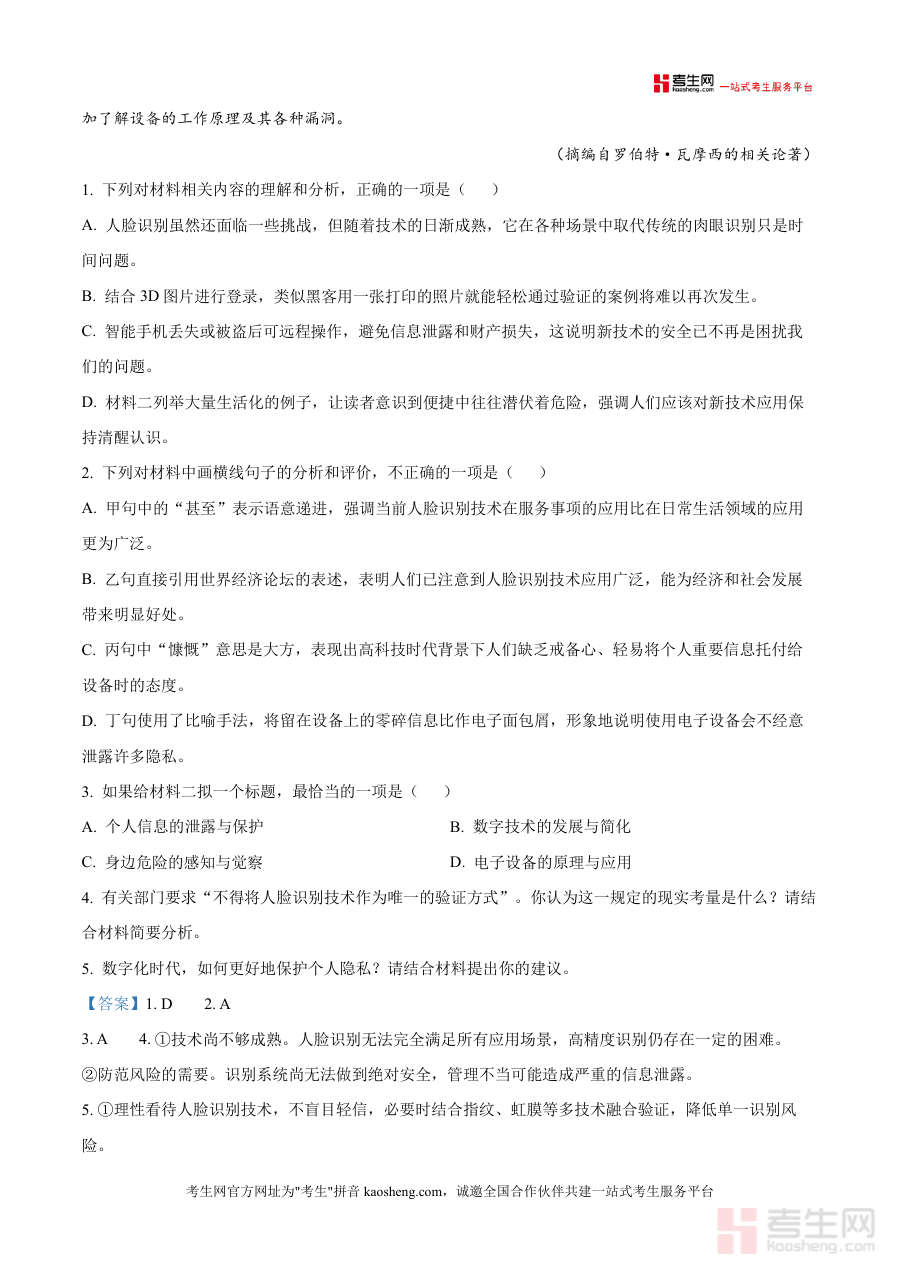 《精品解析:江西省部分校2025-2026学年高三上学期高考仿真模拟检测(三)语文试题(解析版).docx》是一份针对江西省2026届高三学生语文高考备考需求开发制作,融合仿真模考与深度解析于一体,聚焦语文核心素养提升及应试能力培养 的专业备考资料;该资料严格遵循高考150分钟考试时长与150分分值设置,涵盖现代文阅读(含科技伦理主题下人脸识别技术分析与个人隐私保护探讨等前沿话题文本)、古诗文阅读等高考核心题型,覆盖72分阅读板块及其他题型完整结构;特色亮点在于以真题级仿真度还原江西高考命题风格,解析部分不仅提供标准答案,更针对答题逻辑、文本解读方法及失分点进行细致拆解,帮助学生构建系统化答题框架?