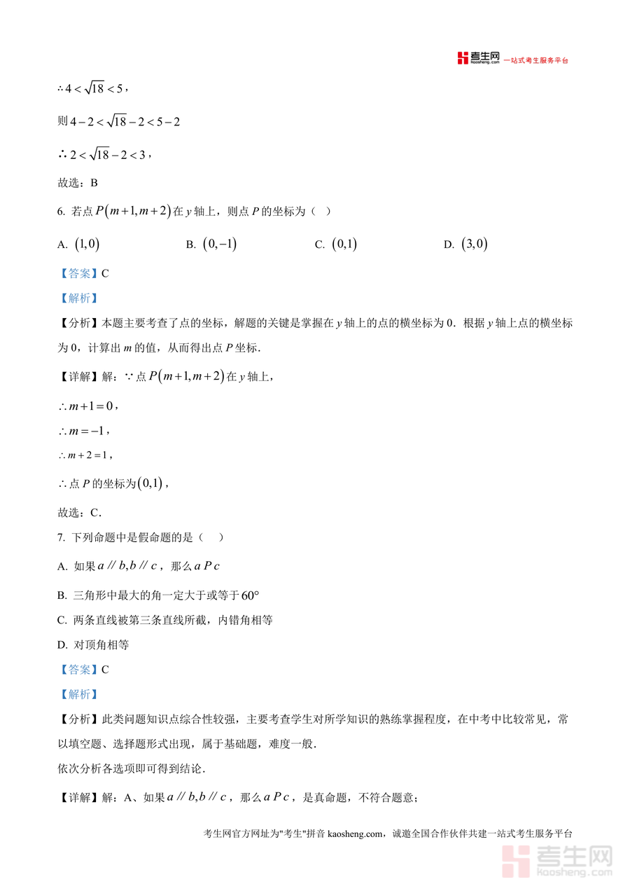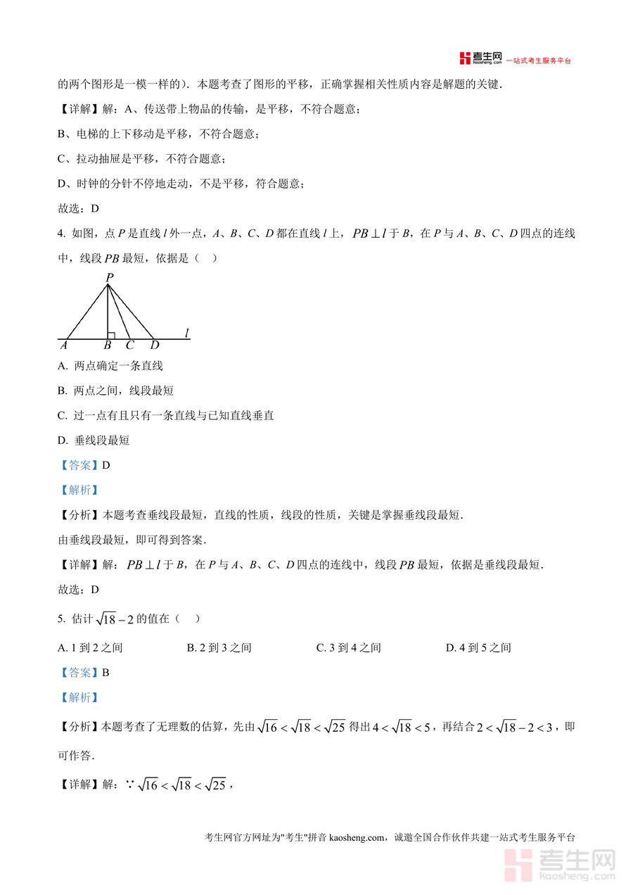 该资料核心用途为七年级学生期中复习阶段的自我检测与知识巩固工具——学生可通过限时完成试卷模拟真实考试场景提升应试能力,对照解析明确知识薄弱点并针对性补强;同时也可作为数学教师备课参考资料或家长辅导孩子学习的辅助材料。其备考优势体现在解析精准匹配本地考情方向,如对平移现象、垂线段最短等高频考点的深度剖析,能有效帮助使用者快速掌握期中命题规律,通过典型例题拓展思维方式,提高解题效率。