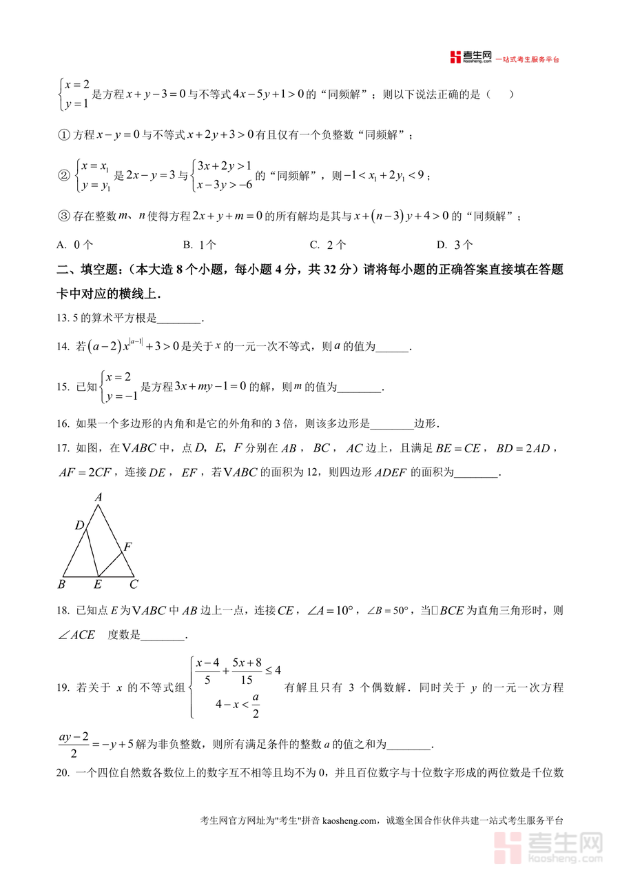 本资料适用于七年级学生、初中数学教师及期中备考指导者。作为重庆顶尖名校巴蜀中学的期中试题,它是七年级下学期期中备考不可或缺的资料,原卷版保留了试题原貌,便于学生真实模拟考试;其不可替代性体现在试题设计的前瞻性与代表性,能反映当下初中数学教学重点与方向;长期价值在于可作为后续复习的重要参考,助力学生构建完整知识体系,为后续学习打下坚实基础。