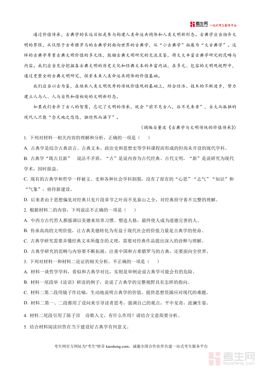 《精品解析:2026届四川省巴中市高三零诊语文试题(原卷版).docx》是一份针对巴中市2026届高三学生语文备考设计的专业真题资料,完整呈现本地零诊考试原卷内容与结构,涵盖现代文阅读Ⅰ(含多则材料分析题型)、现代文阅读Ⅱ(文学类文本阅读)等核心模块,并严格遵循150分钟考试时长及150分满分标准设置。其特色亮点在于精准贴合巴中市高中语文教学实际与命题趋势,并通过高还原度原卷呈现方式提供真实考试场景体验;同时配套专业解析内容(虽原卷版侧重真题呈现,但整体设计服务于备考需求),属于兼具权威性与实用性备考资料。