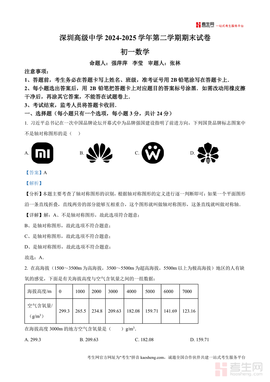 本资料适用于七年级数学学习者尤其是深圳高级中学集团及深圳区域备考期末数学考试学生,同时可作为初中数学教师教学参考资源。总结来看,该资料不仅是期末备考必备工具,其详细思维过程解析能培养学生数学逻辑思维,长期使用可提升学科核心素养;相较于普通习题集,其基于本地名校真题且解析权威详实,具有不可替代备考价值,助力学生在期末考试中取得优异成绩。
