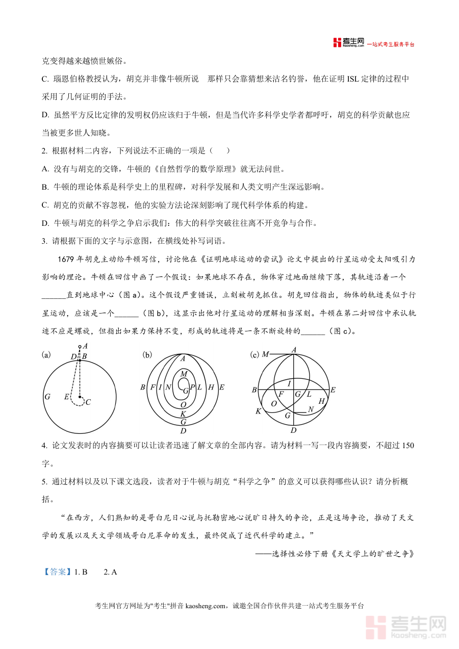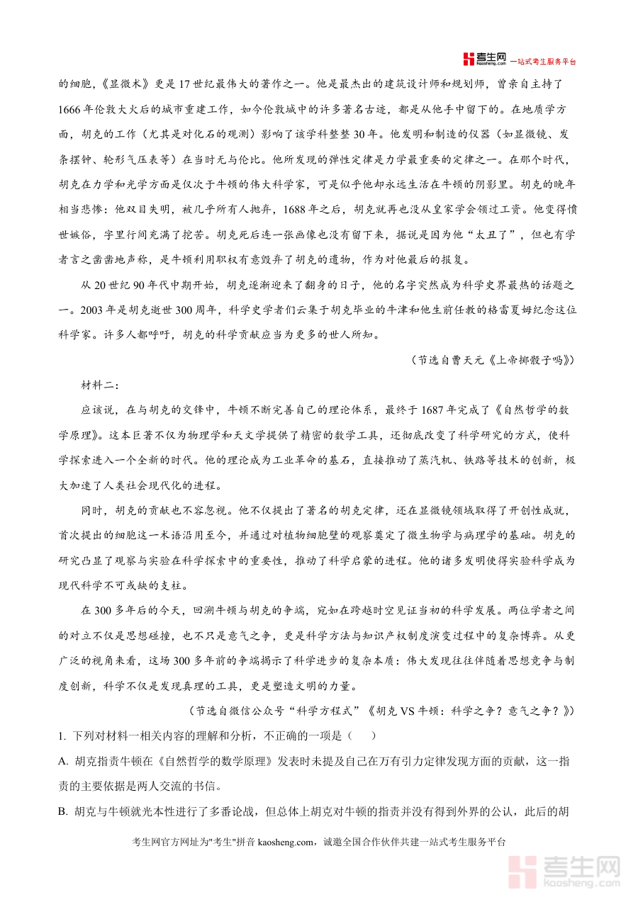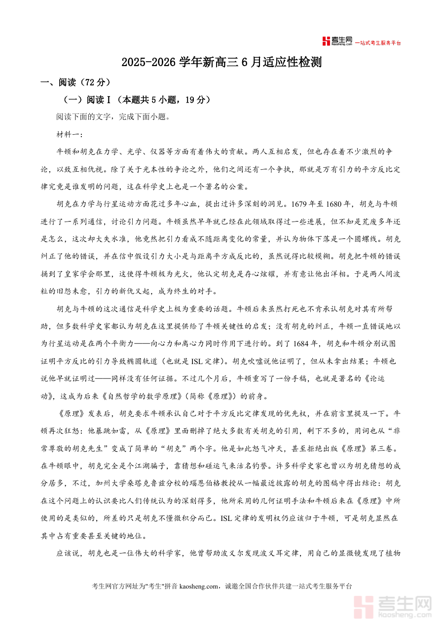 《精品解析:2026届山东省济南市山东省实验中学高三适应性检测语文试题(解析版).docx》是一份针对2026届高三学生语文备考需求的真题解析资料核心定位为助力学生熟悉适应性检测题型结构与命题逻辑并提升解题能力其主要内容涵盖现代文阅读(含多文本对比阅读)补写词语内容摘要及分析概括等典型高考题型并选取如牛顿与胡克科学之争相关科普文本作为阅读素材兼具知识性与思辨性特色亮点在于解析部分不仅提供精准答案还详细呈现解题思路及易错点归因并融入信息提取逻辑推理等语文核心素养训练要素确保资料实用性与专业性