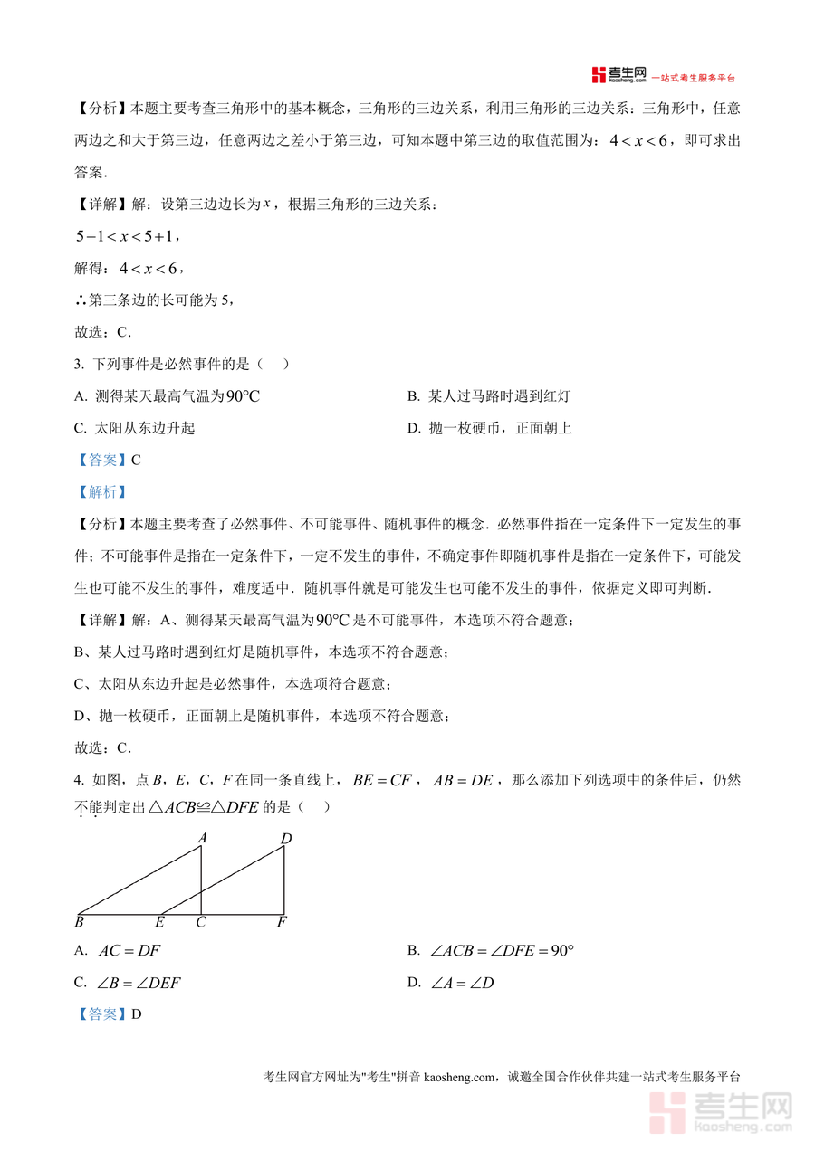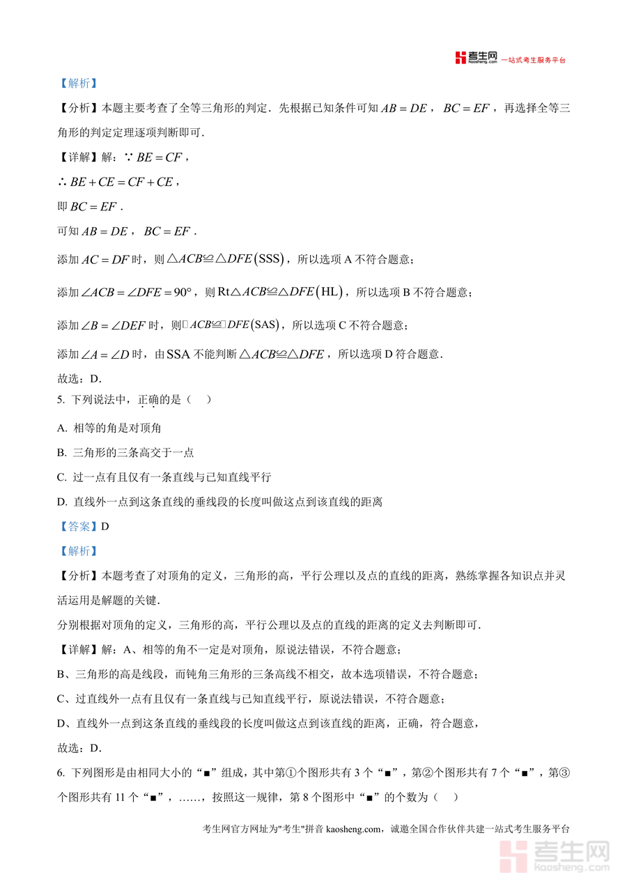 该资料核心用途为助力学生高效备考期中,使用场景包括考前真题模拟训练(熟悉命题题型与难度)、日常错题复盘(通过解析修正思路偏差)、考点针对性巩固(聚焦全等三角形等高频考点);教师可作为教学参考素材(了解命题趋势与学生易错方向)。用户价值体现在提升应试能力——通过真题解析掌握解题方法与技巧迁移(如第6题规律型题目归纳思维培养);备考优势在于依托重庆一中内部命题资源,解析贴合本地大纲,精准把握考试重点与命题逻辑。