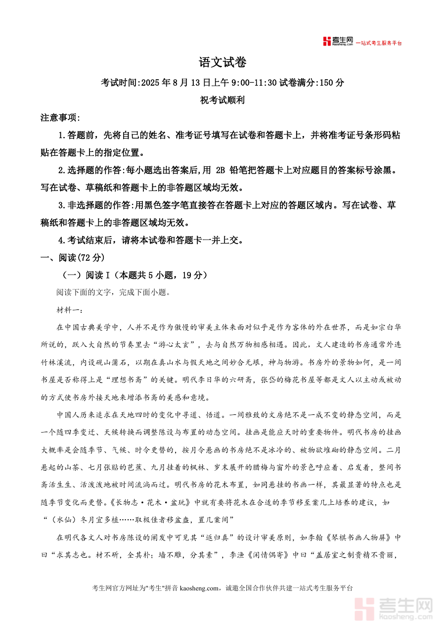 《精品解析:2026届湖北省腾云联盟高三上学期开学考试语文试卷(解析版).docx》是一份聚焦高三语文备考需求且针对性极强的权威真题解析资料,核心内容包含2025年8月腾云联盟开学考试完整语文试卷原文及逐题深度解读(覆盖阅读Ⅰ/Ⅱ、语言文字运用等全题型)。其特色亮点在于:一是解析紧扣湖北本地命题趋势与腾云联盟考试风格,对阅读题中"天人合一"美学理念等文化类文本进行精准拆解;二是针对不同题型提供分层解题思路,如选择题错误类型分析、主观题得分要点梳理;三是融入命题意图解读,将真题解析与应试能力提升深度结合,帮助学生明确备考方向并掌握核心答题技巧。