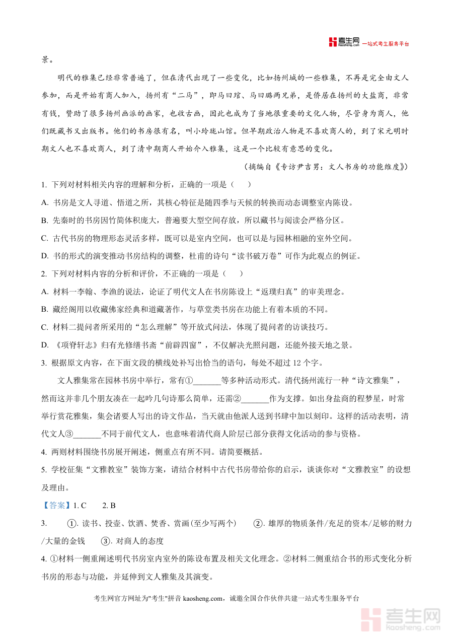 该资料的核心用途在于助力高三学生高效利用真题资源提升语文应试水平:日常使用场景包括自主练习后的错题订正(对比自身思路与标答差异)、专题复习时题型归纳(如整理文化类文本答题逻辑)及考前模拟复盘;教师可将其作为教学参考讲解本地考情特点;用户价值体现在通过逐题解析掌握得分规律,如补写语句题语境分析方法、阅读题论证思路梳理;相比普通资料其优势显著,针对性强(贴合腾云联盟考情)、解析详实(含文本背景拓展),能缩短从"做真题"到"会做题"的转化周期,提升备考效率。