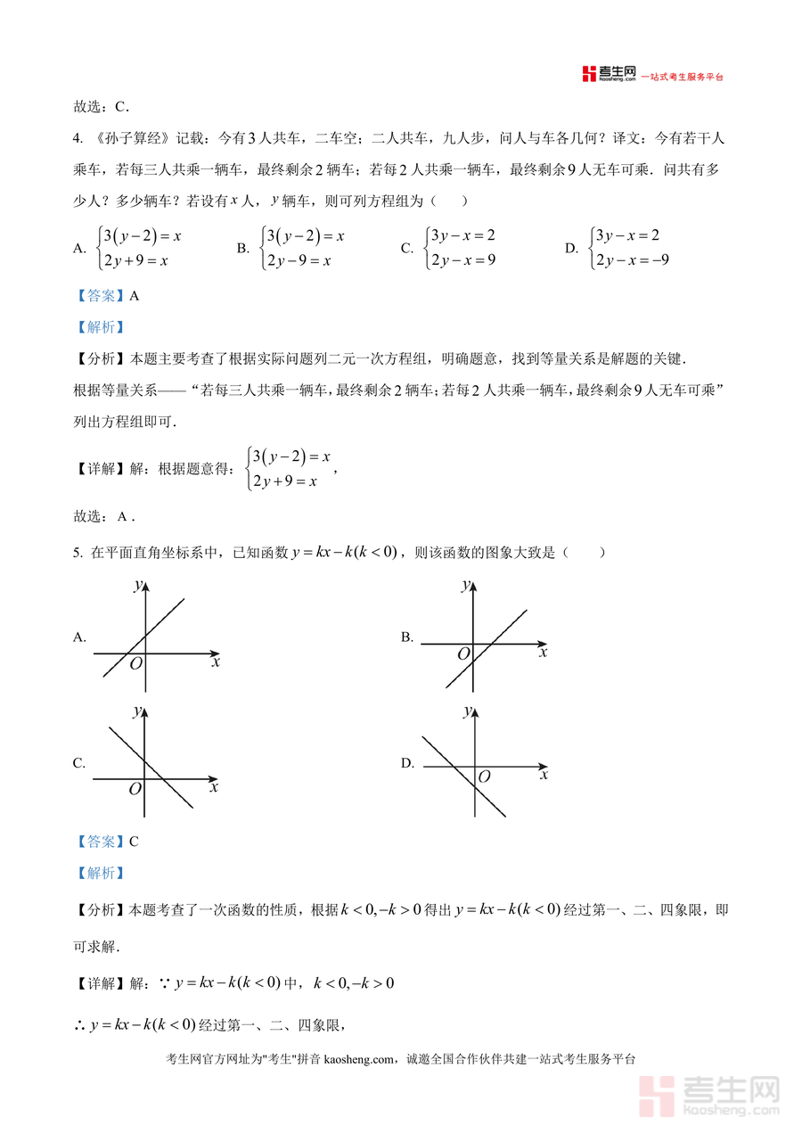 该资料核心用途在于帮助学生巩固八年级上学期前6章核心知识,使用场景覆盖日常课后复习、周测后错题订正及考前综合能力提升。通过真题解析,学生可精准把握校考命题方向与题型特点,掌握不同题型解题技巧,如二元一次方程组在几何图形中的应用(第7题)及一次函数与坐标轴交点问题(第5题),有效提升应试能力;同时,解析中对经典题型(如《孙子算经》应用题)拓展讲解,能帮助学生建立知识间联系,增强知识迁移能力。