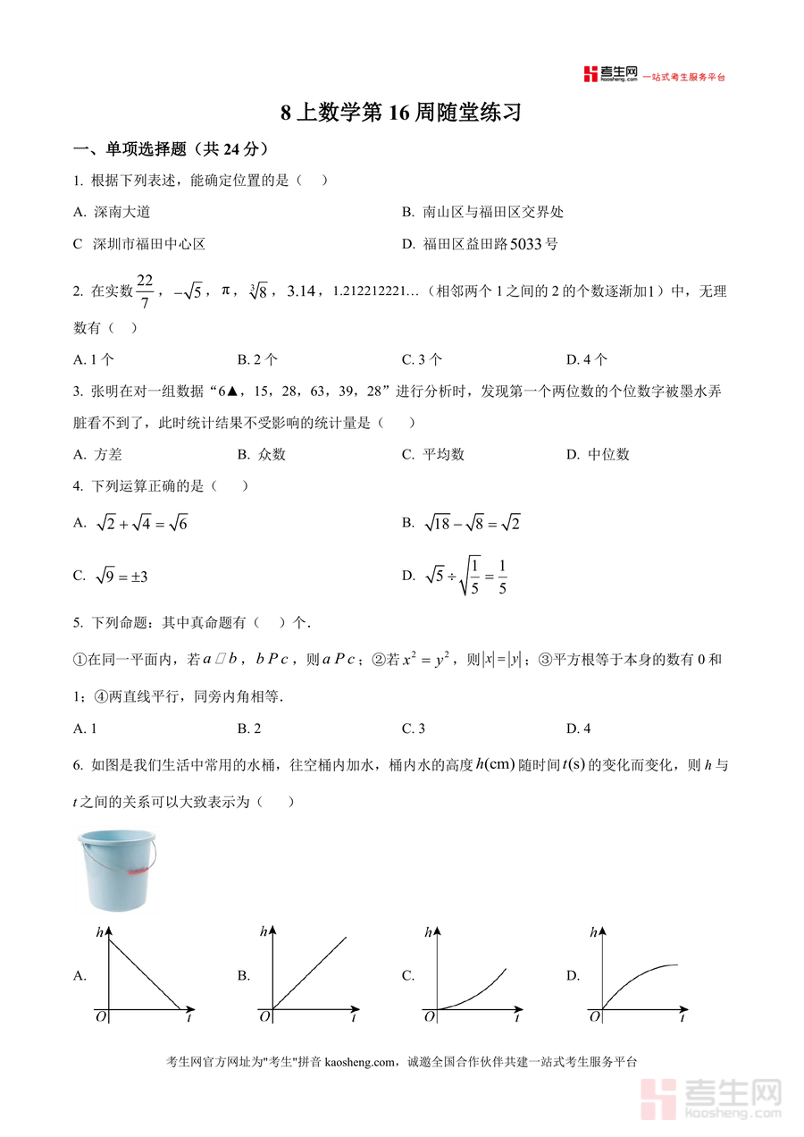 本资料适用于深圳宝安中学及周边采用相似教学进度的八年级学生、初中数学教师及关注孩子数学学习的家长。作为校考真题原卷,它具有不可替代性——能直接反映该校的命题风格与教学侧重点,是学生备考该校月考不可或缺的资料;其长期价值在于帮助学生养成规范答题习惯,提升数学思维能力,不仅助力当前月考取得好成绩,更为后续九年级数学学习奠定坚实基础。
