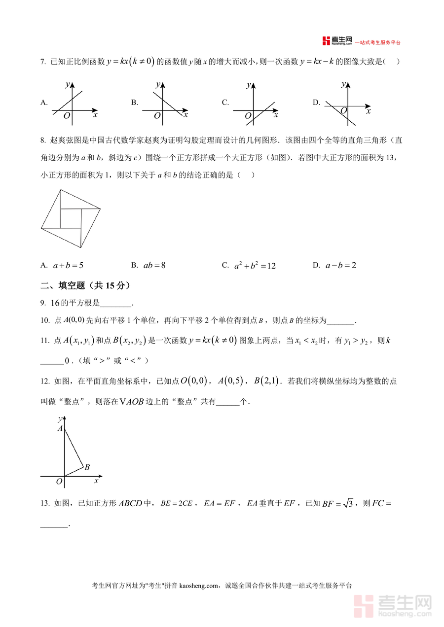 《精品解析:广东省深圳市宝安中学2025-2026学年上学期八年级数学月考卷(原卷版).docx》是一份聚焦深圳宝安中学八年级上学期数学教学进度与校考要求的真题备考资料。该资料对应第16周随堂练习,题型涵盖单项选择、填空题及解答题三大类共20道题目,覆盖实数概念与运算、统计量应用(众数、中位数等)、一次函数图像与性质、几何图形(赵爽弦图、四边形探究)及新定义问题等核心考点。其特色在于严格贴合该校教学实际,既包含基础计算类题目(如平方根运算、方程组求解)以巩固知识,又设置探究性题目(如等腰直角三角形拓展延伸)以培养学生逻辑思维,为使用者提供真实校考场景下的练习素材。