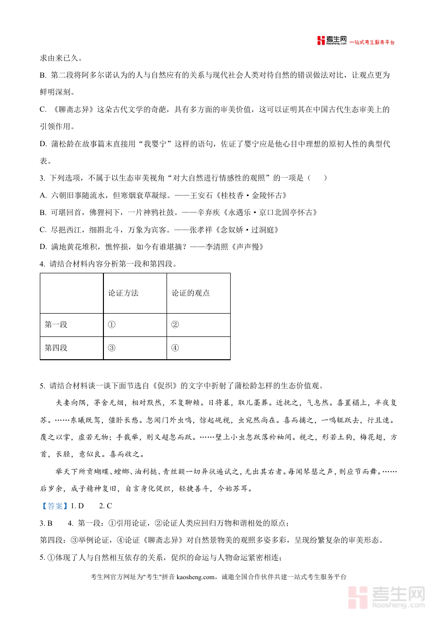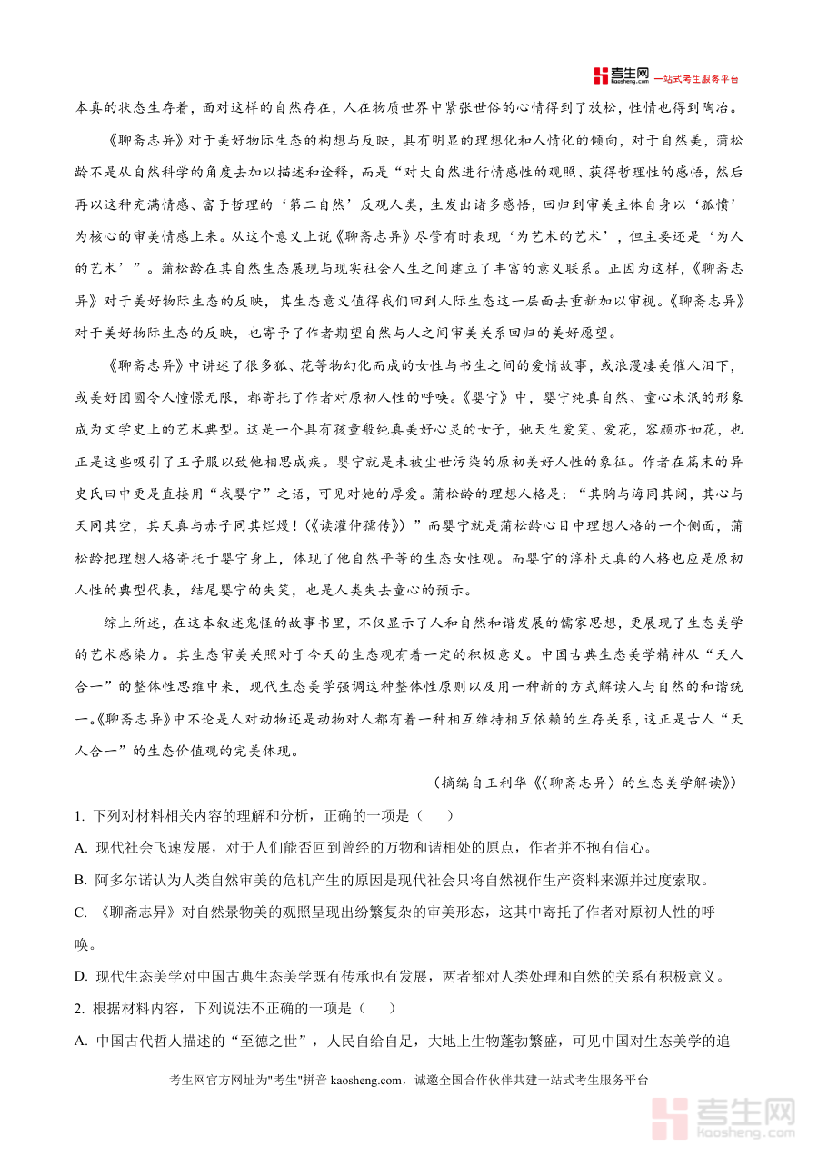 《精品解析:安徽省阜阳市临泉县田家炳实验中学(临泉县教师进修学校)2025-2026学年高三上学期开学检测语文试题(解析版).docx》是一份聚焦高三开学阶段语文能力评估与提升の专业真题解析资料,核心内容覆盖现代文阅读(含Ⅰ卷生态美学视角下《聊斋志异》解读及Ⅱ卷文学类文本分析)等题型,并配套详实答案与深度解析。其特色亮点在于紧扣本地教学实际,将学术性解读(如阿多尔诺生态理论应用)与应试技巧(如选项正误判断逻辑)有机融合,同时融入"真题解析""应试能力"等核心关键词,为备考提供兼具针对性与系统性の支撑。