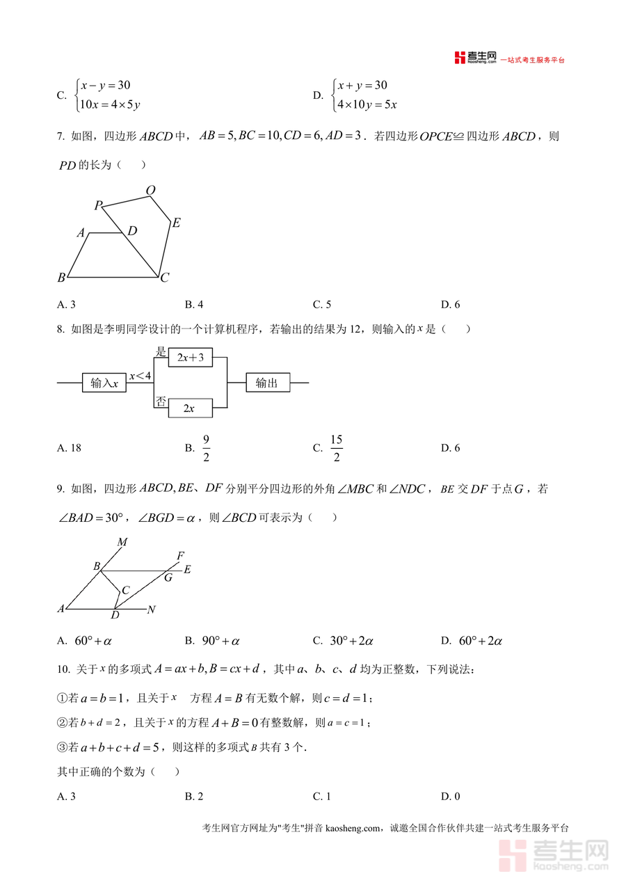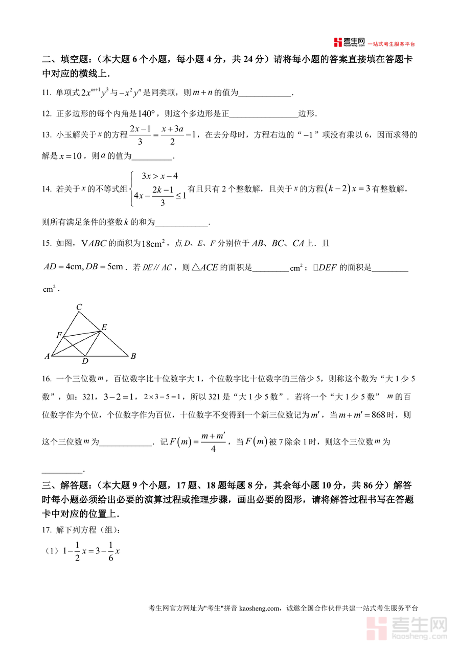 该资料核心用途在于辅助七年级学生期末备考复习,并为教师教学与家长辅导提供权威参考。学生通过完成原卷可模拟真实考试环境提升应试能力、精准把握题型分布与解题思路;教师可借助其开展课堂测评或针对性训练巩固知识点;家长能引导孩子限时练习培养良好答题习惯。作为本地期末监测真题资源它具备高度针对性与实用性优势,助使用者快速适应考试节奏明确复习重点以高效提升成绩。