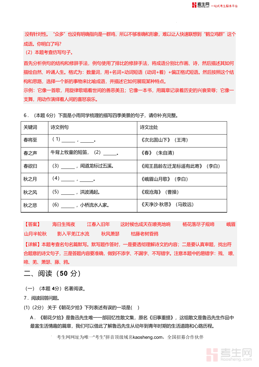 本资料适用于青岛地区七年级语文教师(作为教学检测材料)、七年级学生(用于备考练习)及学生家长(辅助孩子复习);其必要性在于填补青岛本地同步月考模拟卷针对性空白,不可替代性体现在结合本地教学实际与统编版教材精准适配,长期价值则是帮助学生夯实语文基础,培养阅读理解与语言运用能力,为后续学期学习及中考备考奠定坚实基础,是七年级上学期语文学习不可或缺的优质资料。
