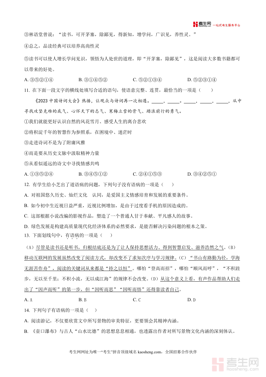 该资料核心用途在于助力学生自查阶段性学习漏洞,教师优化备课方案,家长开展精准辅导;适用场景包括考前模拟训练、日常知识点巩固、单元复习强化等。对学生而言,通过练习该试题可熟悉月考题型结构,掌握易错考点(如成语误用、诗词意象理解偏差等),有效提升应试能力;对教师来说,可借鉴其命题思路完善教学计划;对家长而言,能直观了解孩子学习状况,辅助制定个性化提升方案,备考优势显著