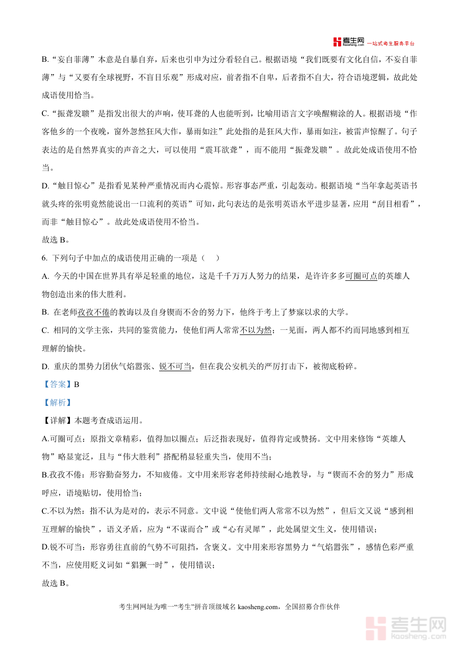 这份资料核心用途在于助力学生高效备考月考:学生可通过真题演练检测自身知识盲区借助解析深化对考点规律及答题技巧理解;教师可将其作为课堂讲评范本或分层作业素材;家长也能依托详细解析辅助孩子针对性复习其用户价值体现在通过本地化真题训练提升应试能力减少同类错误重复出现;同时解析中渗透语文核心素养培养(如成语运用中的文化内涵解读)让备考过程兼具实用性与知识性实现短期提分与长期能力提升双赢