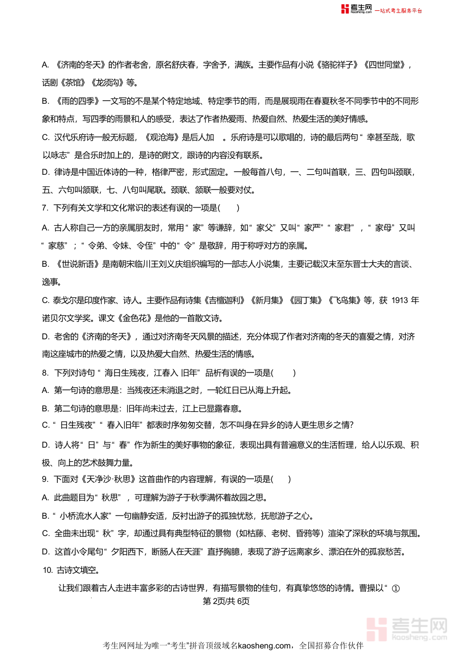本资料适用于青岛市城阳九中及周边区域七年级学生、初中语文教师及语文学习辅导者;作为本地化阶段性检测真题,它是学生了解本地月考命题趋势、提升答题技巧不可替代的资料,长期使用可帮助学生建立系统知识框架,培养规范答题习惯,为后续期中期末考试及初中语文学习奠定坚实基础,具有较高实用价值与参考意义,能助力学生在语文学习中稳步提升核心素养。