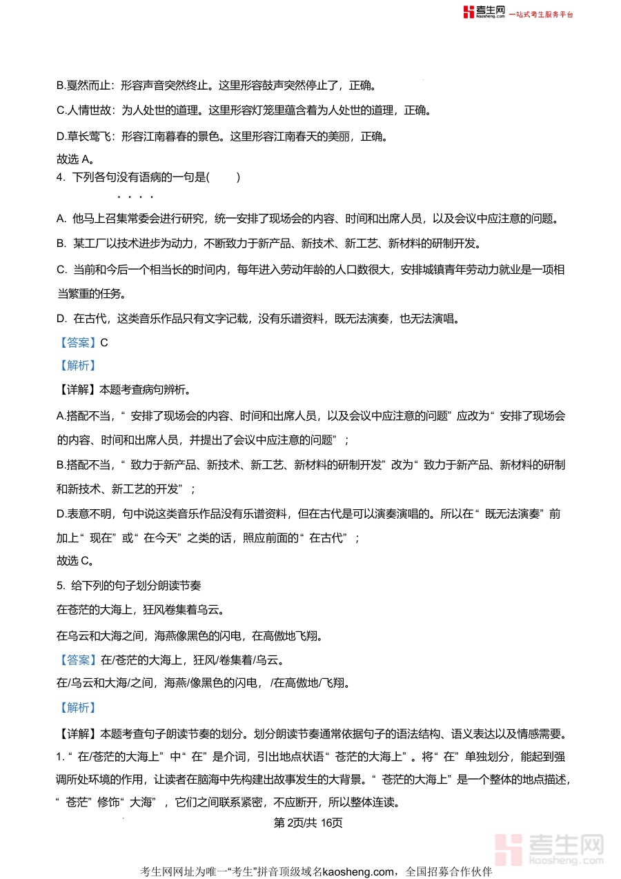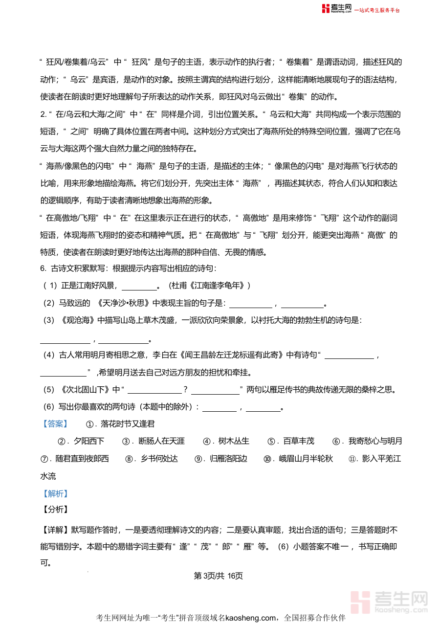 该资料核心用途为巩固七年级上学期语文核心知识点、掌握各类题型答题技巧;使用场景包括课后自主复习时对照解析梳理易错点、考前冲刺阶段通过真题训练熟悉考试题型与难度、教师备课参考典型例题解析;用户价值在于精准定位知识盲区(如病句修改中的搭配不当问题),提升规范答题能力;备考优势在于贴合该校月考命题方向与难度梯度,能有效提升应试能力,助力学生在月考中取得优异成绩。