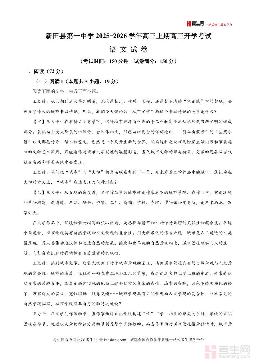 适用人群主要为新田县一中高三全体学生及湖南省内同年级备考语文学生本资料必要性在于开学检测作为高三复习关键起点能帮助师生及时调整教学策略不可替代性体现在其为本地最新真题且由专业教师团队编写针对性强长期价值在于可作为全年复习参考持续助力夯实基础提升素养为高考优异成绩奠定基础