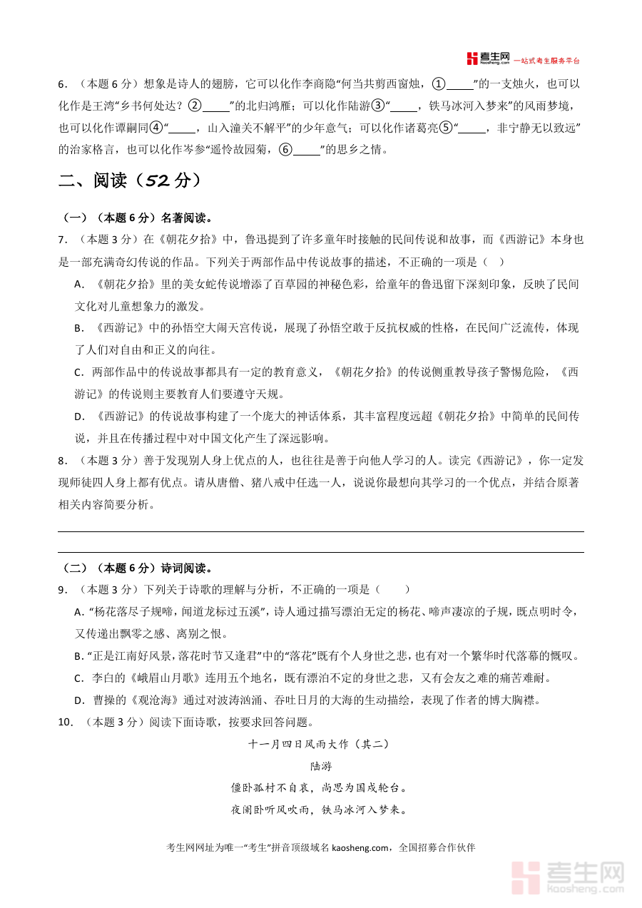 本资料适用于青岛地区该学年七年级学生、语文教师及关注备考家长;作为青岛专用同步备考卷具不可替代性,题型分值契合本地标准且考点全面针对性强;长期价值在于夯实七上语文基础,培养规范答题习惯,积累应试经验,是期末备考不可或缺的优质资料;