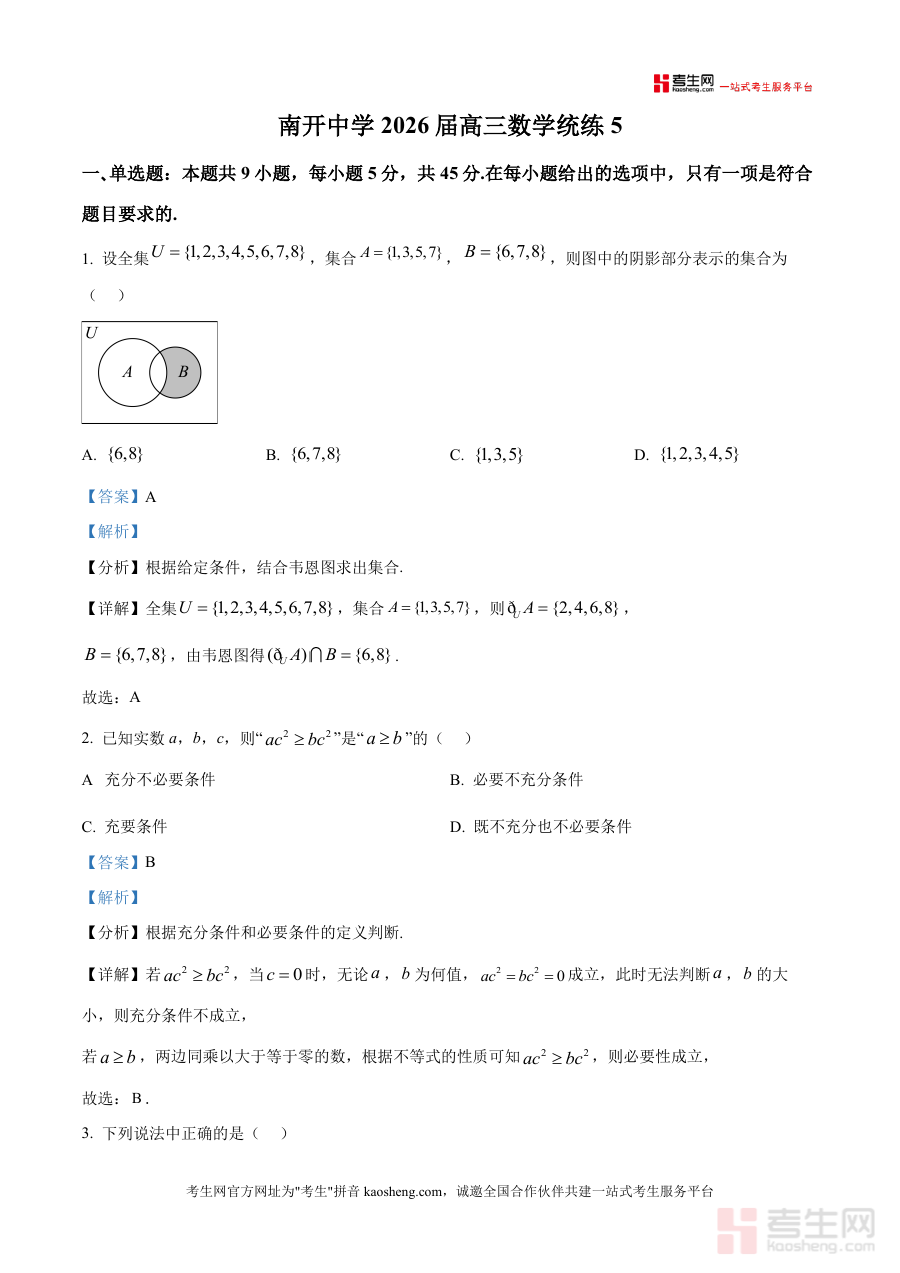 《精品解析:天津市南开中学2025-2026学年高三上学期数学统练5(解析版)》是一份针对高三学生数学备考需求打造优质真题解析资料涵盖单选题填空题解答题全题型内容。解析部分包含详细解题步骤如样本中心代入线性回归方程计算、相关系数判断线性相关性强度等核心知识点深度剖析,并标注考点定位与易错点提示,帮助学生理解题目背后逻辑与解题思路。