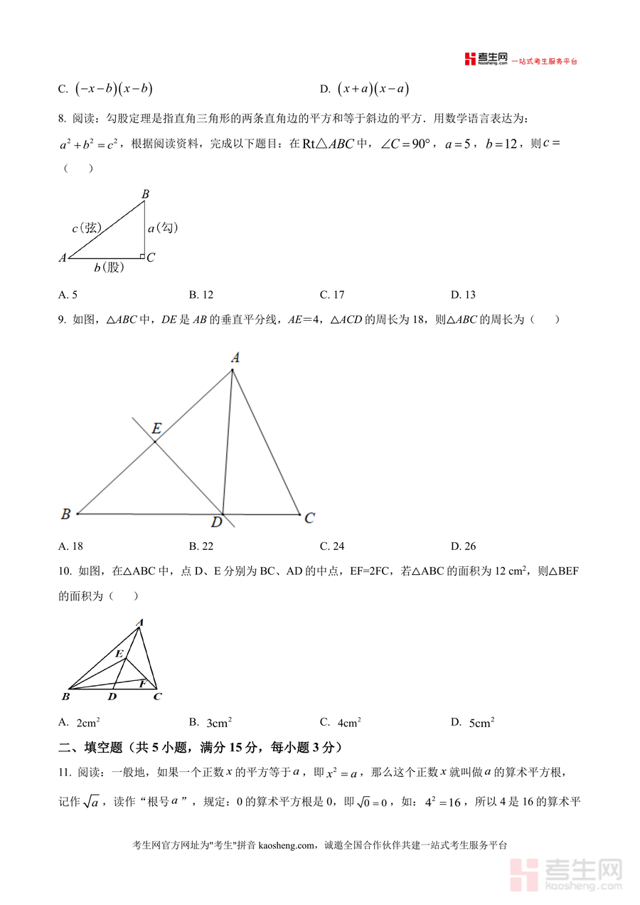 该资料适用于深圳市福田区耀华实验学校及周边同类学校的八年级学生、初中数学教师,以及关注开学考备考的家长群体。作为区域名校开学考真题资源,它具有不可替代性——能真实反映该校对学生知识掌握程度的考察重点与命题趋势;长期价值在于学生可通过反复练习巩固核心知识点,教师可借鉴其命题思路优化教学内容,是开学前后提升数学学习效果与教学质量的重要资料。
