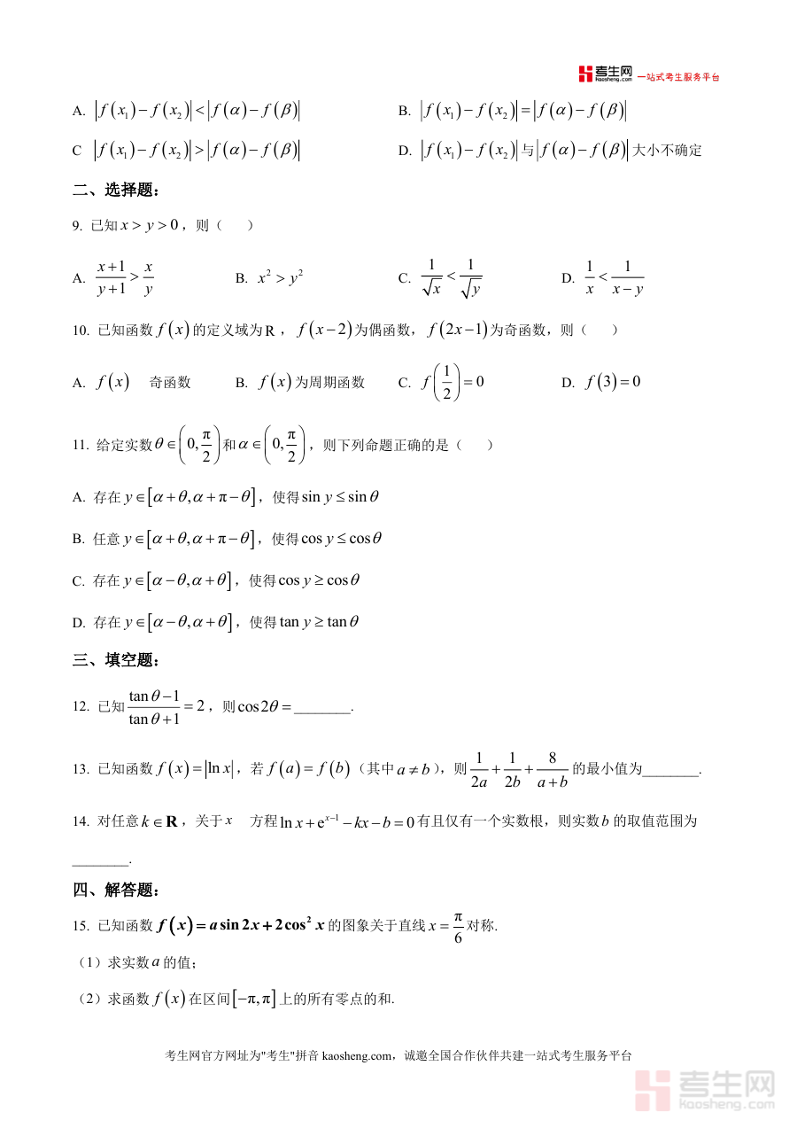 该资料适用于高三年级学生、高中数学教师及高考备考辅导人员。作为高三上学期关键节点的检测资料,它能帮助学生及时发现学习短板并调整复习策略,具有不可替代的阶段性指导价值;同时,其命题质量与权威性确保了资料的长期有效性——不仅可用于当前阶段的复习训练,还能作为后续复习时回顾知识点、强化解题技巧的参考素材。总之,这份资料是高三数学备考过程中提升学习效率与应试能力的重要工具。