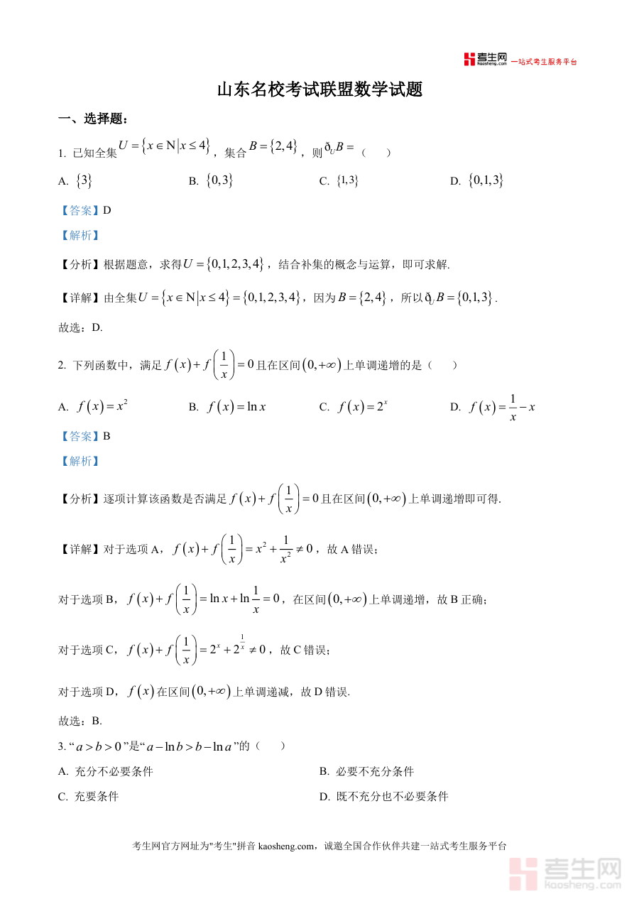 这份资料核心用途在于助力高三学生巩固阶段所学知识、提升应试能力,适用于课堂同步练习、课后自主复习、模拟测试后的错题复盘等场景。通过使用该资料,学生可熟悉山东名校联盟试题的命题风格与难度梯度,掌握不同题型的解题技巧与思维方法;教师可将其作为教学案例或作业素材,辅助课堂教学与学情分析;备考辅导者可借助资料中的考点分布与解析深度,制定针对性复习计划。其备考优势在于依托名校联盟权威命题资源,内容贴合山东高考数学考情,能有效帮助学生查漏补缺,提升解题效率与准确性。