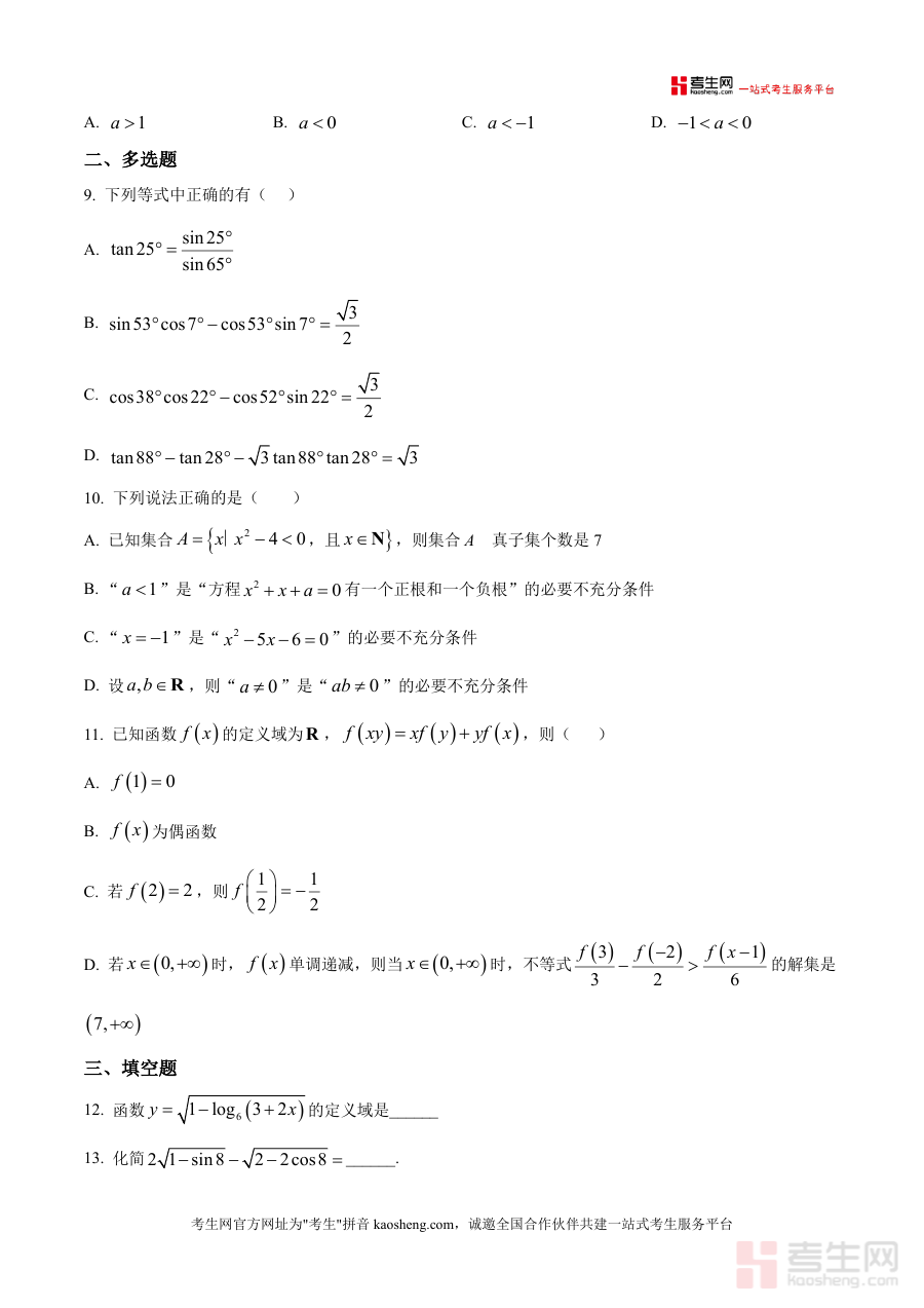 《精品解析:山东省淄博实验中学2025-2026学年高三上学期第一次教学诊断数学试卷(原卷版).docx》是一份聚焦高三学生阶段性知识掌握情况的专业备考资料。该试卷包含单选题、多选题、填空题及解答题四大题型,内容覆盖集合与常用逻辑用语、函数性质与图象、数列、三角函数、概率统计等高中数学核心模块。作为学校首次教学诊断的原卷呈现形式,试卷严格遵循高考命题趋势,题型设置与难度梯度贴合高三初期复习进度,能真实反映学生对基础知识的掌握程度及综合运用能力,为后续复习提供精准学情参考依据。
