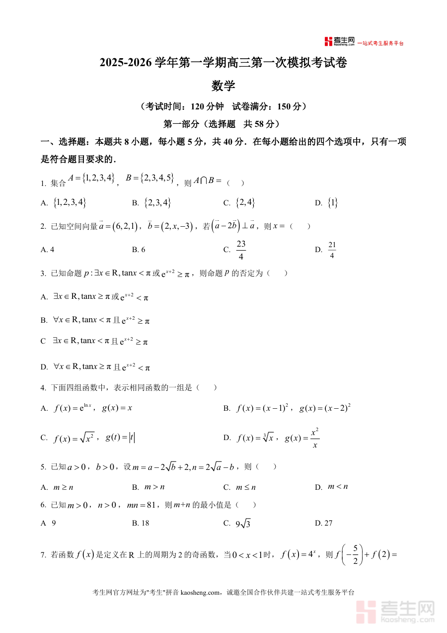 本资料适用于新疆喀什地区巴楚县第一中学及周边同类学校的高三学生、数学教师及备考指导人员。作为高三上学期首次模拟考试原卷,它是首轮复习成果检测的关键工具,不可替代性在于题目内容与本地教学重点高度契合;长期价值体现在为后续复习计划调整提供数据支撑,帮助学生明确备考方向。无论是学生自主提升还是教师教学辅助,该资料均能发挥核心作用,是高三数学备考阶段不可或缺的优质资源。