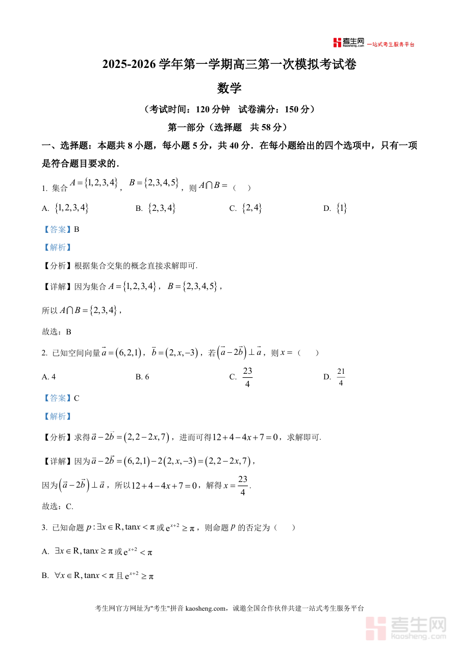 《精品解析:新疆维吾尔自治区喀什地区巴楚县第一中学2025-2026学年高三上学期第一次模拟考试数学试题(解析版)》是专为该校高三学生打造数学模考真题深度解析资料。其覆盖考试时长120分钟、满分150分全卷结构:含8道单选(每小题5分)与3道多选(每小题6分)构成选择题板块,3道填空题及5道解答题组成非选择部分;解析环节针对每道题设考点分析明确考查方向,详细解答步骤拆解思维路径,易错点点睛规避答题误区。特色亮点结合该校教学进度与新疆高考命题趋势,基础题强化概念理解,中档题提炼解题模型,难题拓展思维方法。